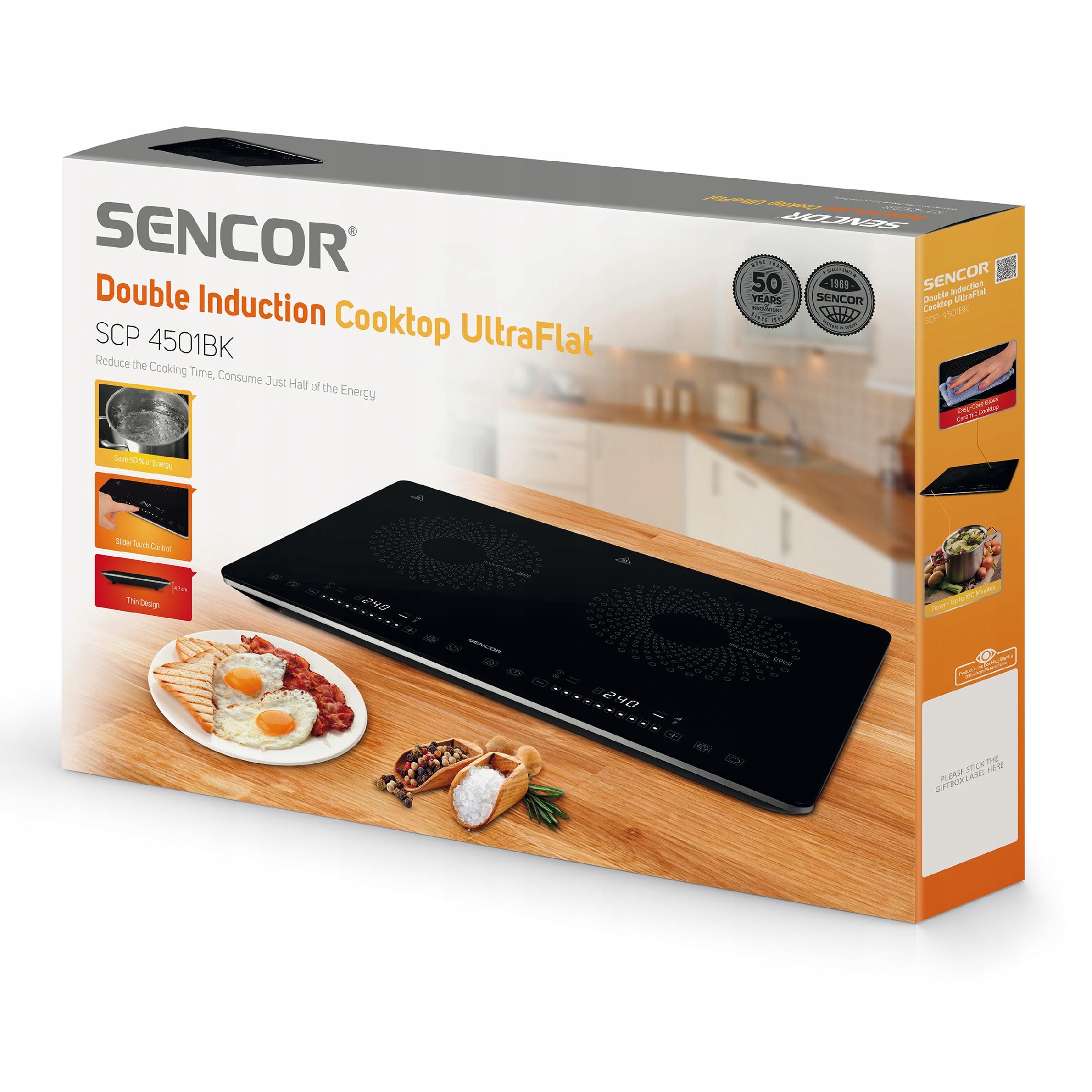 Ультратонкий дизайн — це дуже компактна конструкція, а висота цієї плити становить лише 4,3 см. Це надає диску дуже сучасний вигляд. Крім того, плита Sencor SCP 4501BK виконана в чорному кольорі. Кухня, в якій чорний колір залишається основним, набуває елегантного характеру. Чорні пристрої підходять як до елегантного стилю, так і до ретро. В даний час все більше і більше пристроїв випускається в чорному кольорі, але вони відносно рідко зустрічаються в повсякденному використанні, тому оформлений таким чином інтер'єр можна виділити з-поміж інших. У порівнянні з білим, чорний колір не змінить свій колір з часом, він завжди буде виглядати добре.