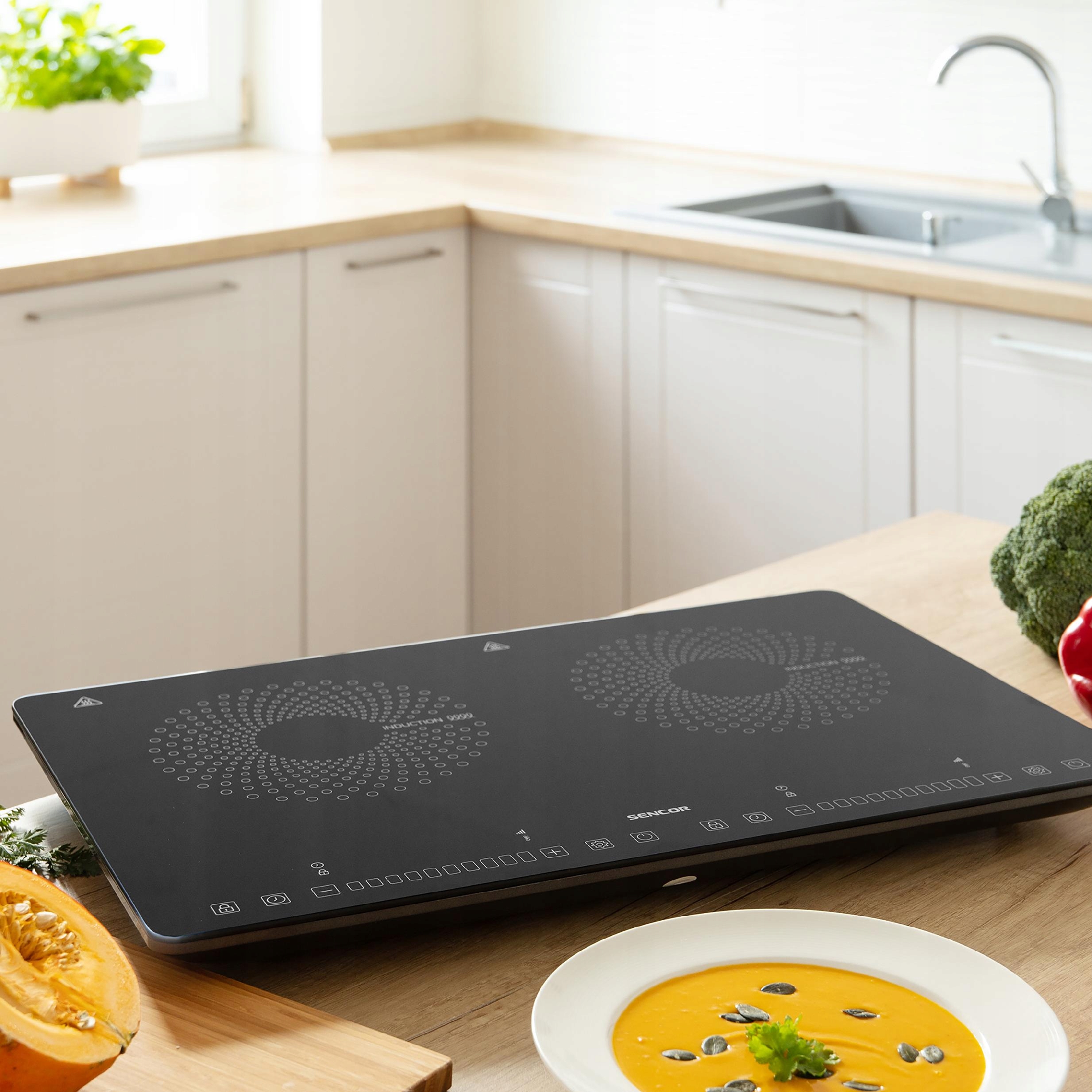 Подворка Sencor SCP 4501BK потужністю 3400 Вт — ідеальна ультратонка індукційна плита для варіння, смаження та тушкування їжі. Найголовніше, що він холодний на дотик. Все це для того, щоб зробити приготування їжі ще ефективнішим і безпечнішим. Він сподобається кожній господині та мешканцям, які смачно їдять.