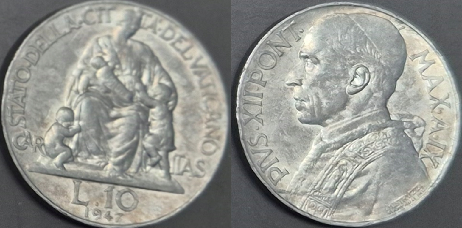 Ватикан 10 лір 1947 KM 47 Пій XII