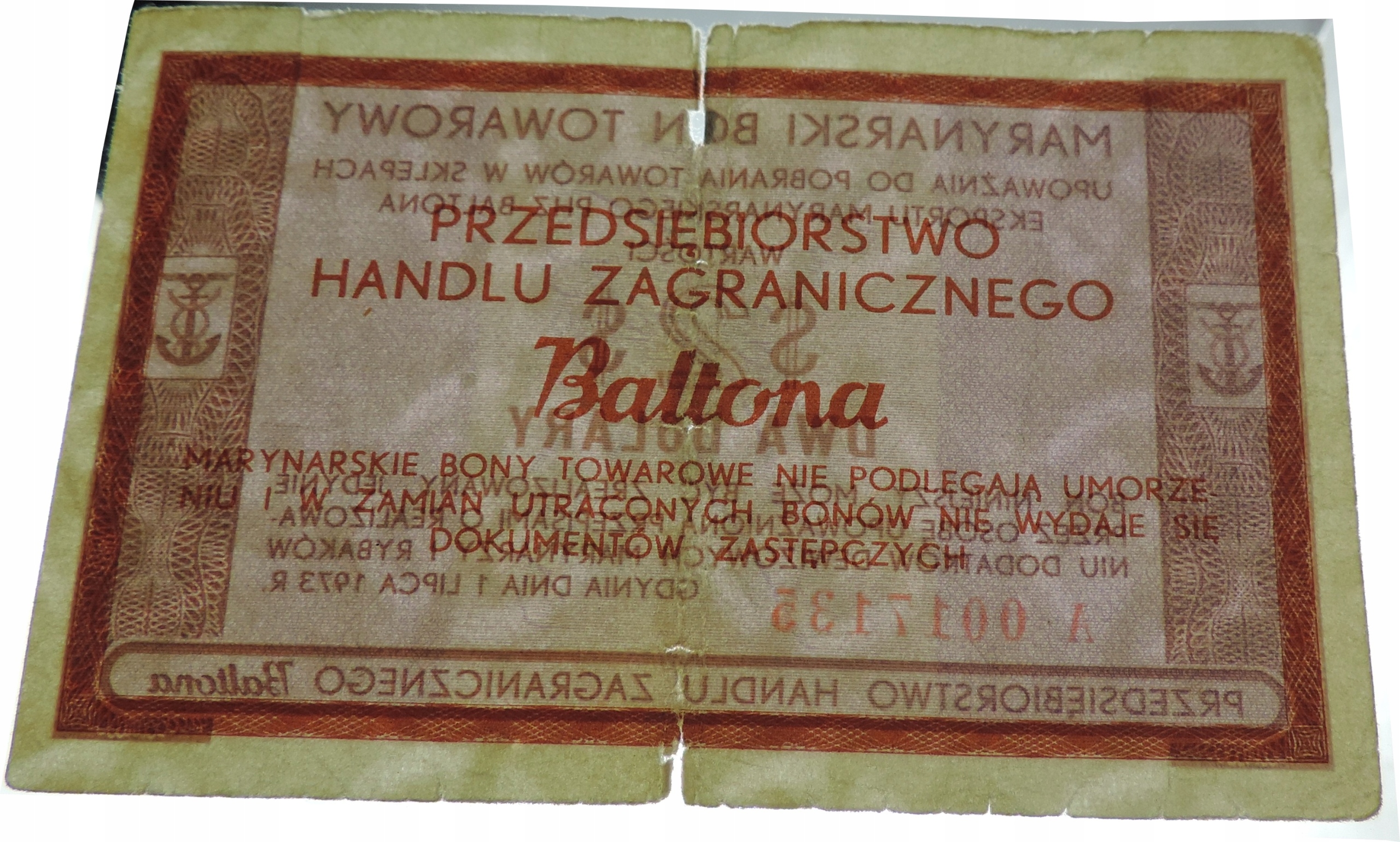 ВАУЧЕР НА ТОВАРИ МОРЯКА - BALTON - 2 ДОЛАРИ - 2 $ - ОРИГІНАЛ -OY9017