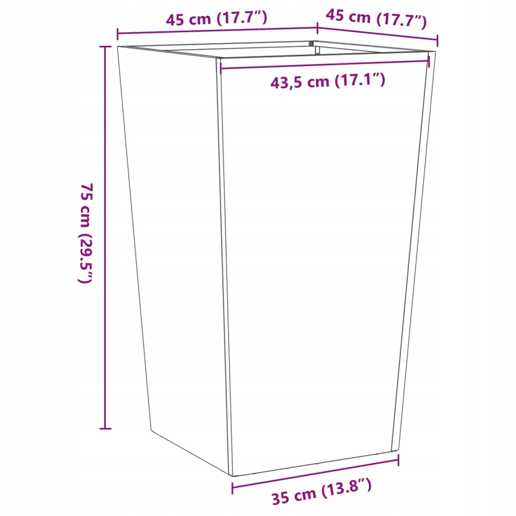 Вазон садовий сталевий 45х45х75 см, без отворів, колір: чорний