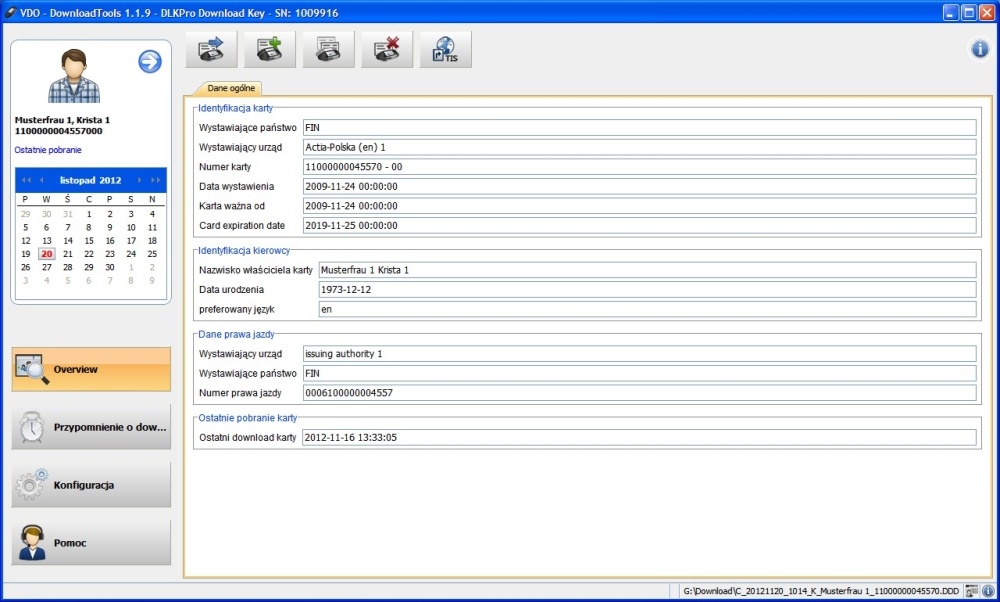- Завантаження даних із картки водія без картки компанії