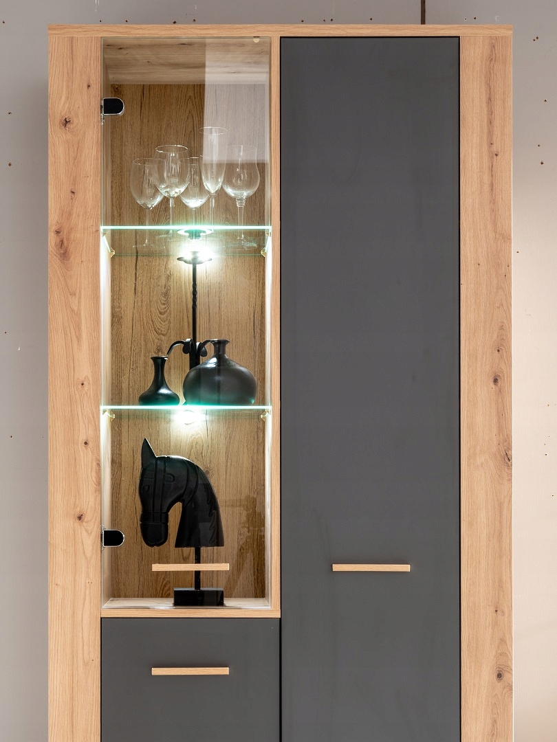 VEGA ШАФА З LED ДИСПЛЕЄМ, ДУБ ГРАФІТ ARTISAN, 90 см