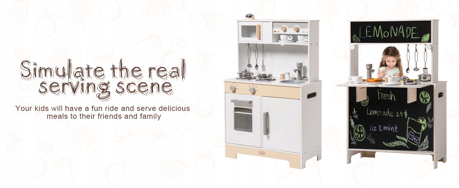 Кухня для дітей "Зробіть це самостійно" - Набір кухні Robud доступний у різних стилях, з візерунками та без них. Кухонний набір містить два стилі наклейок , завдяки яким ваша дитина може самостійно розробити стиль кухні для дітей, включаючи передню та задню