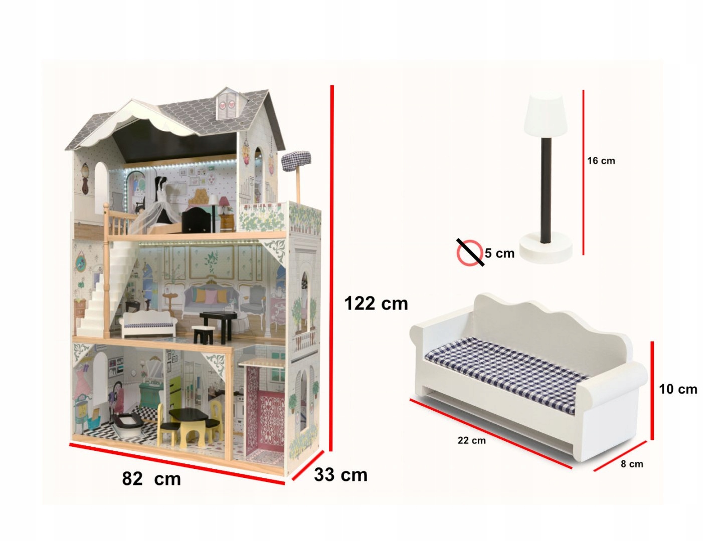 ВЕЛИКА ДЕРЕВ'ЯНА МДФ МЕБЛІ ДЛЯ ЛЯЛЬКОВОГО БУДИНОЧКУ LED СВІТЛЕННЯ 122 СМ
