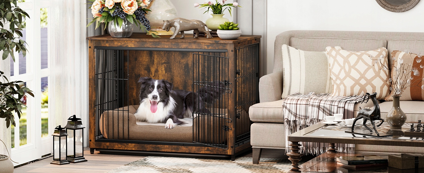 Приємний і функціональний: чудовий вольєр для собак поєднує металевий каркас із дерев’яним стилем, красивий, естетичний предмет, який добре поєднується з інтер’єром вашого дому. Його можна використовувати як тумбочку з дерев'яною верхньою кришкою для розміщення рослинних іграшок для собак і як безпечне місце для сну вашого вихованця