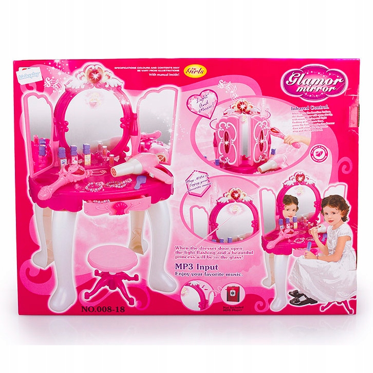 Чудовий туалетний столик був додатково збагачений виходом у форматі MP3. Слухаючи улюблену музику, принцеса буде проводити багато годин перед дзеркалом, піклуючись про свою красу.
