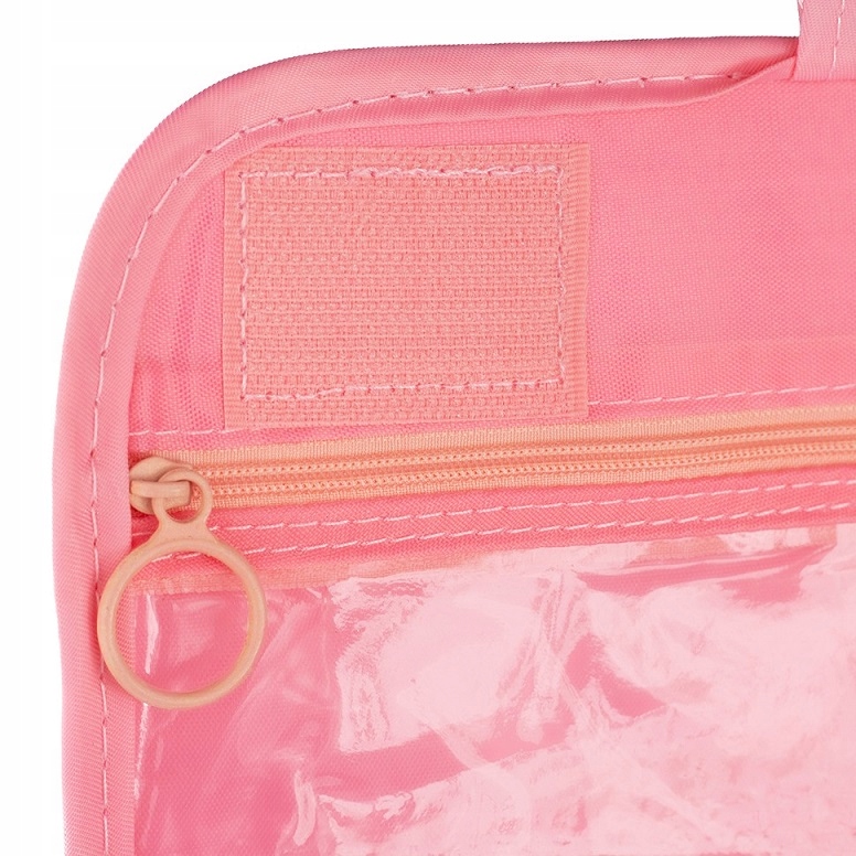 Дорожня косметичка, яку можна повісити як зручний органайзер, є ідеальним рішенням для мобільних жінок, які навіть під час подорожі хочуть піклуватися про себе піклуватися. Складена косметичка – це естетична валіза, а в розкладеному вигляді стає ледь не шафкою для ванної кімнати. Косметичка виготовлена з водонепроникного матеріалу. Ви можете вільно повісити її в зручному місці.