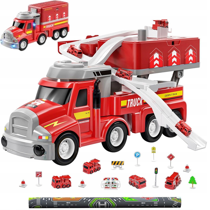 Іграшкові транспортні засоби для дітей мають яскраве світло та звуки, які привертають увагу та інтерес дітей. Діти можуть пограти в маленьких «пожежників» і дізнатися про гасіння пожеж на фоні міського пейзажу! Іграшки для маленьких дівчаток і хлопчиків підходять для гри вдома та на вулиці.