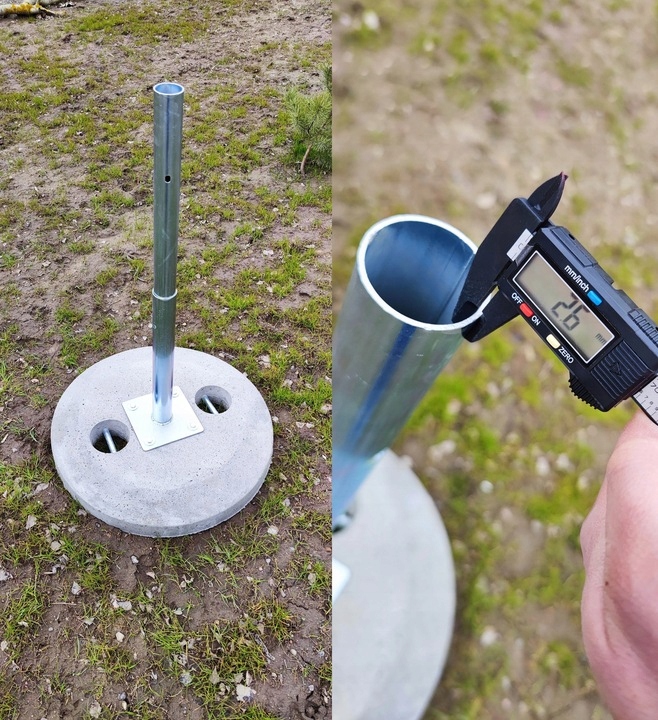 - Товстостінна труба, прикріплена до бетону за допомогою 4 гвинтів ( легке розбирання для транспортування)