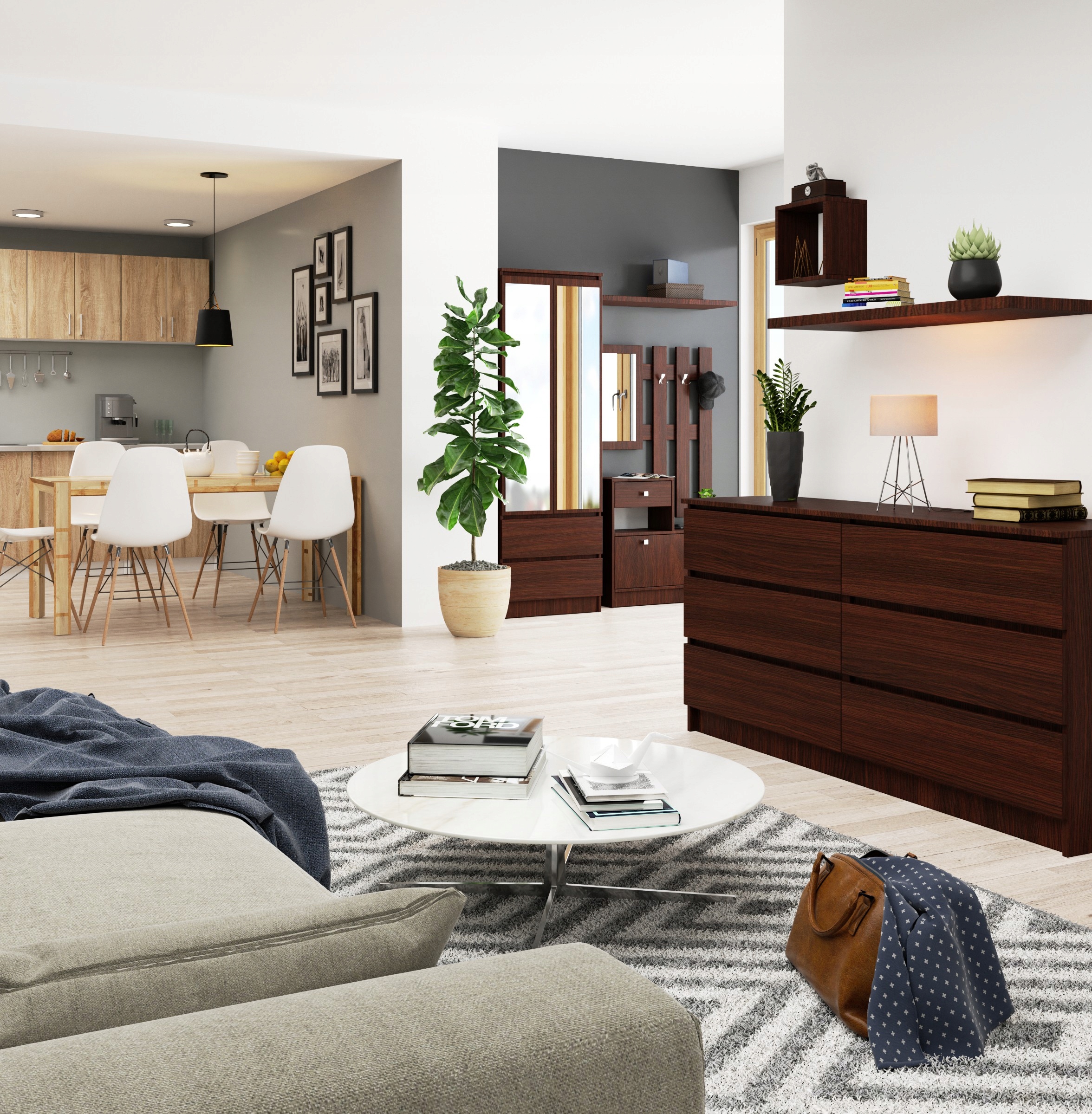 Комоди з нашої пропозиції - це вироби найвищої якості, які виготовлені з міцних, міцних і стійких до пошкоджень і подряпин матеріалів,таких як ламінована плита товщиною 16 міліметрів. Краї тумбочки покриті кромкою ABS, що забезпечує високий захист.