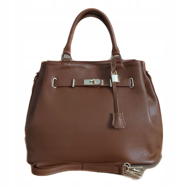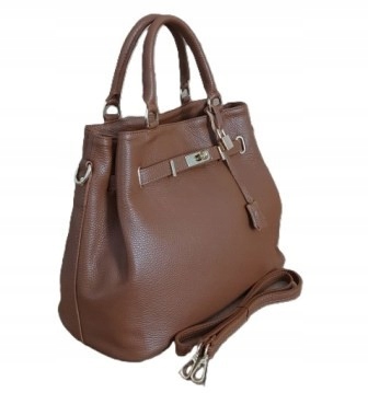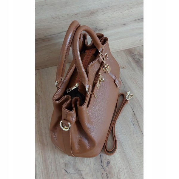 ВЕЛИКА ШКІРЯНА ЖІНОЧА СУМКА - ЗАМОК - ЗОЛОТА ФІРКУЛЯР - КАРАМЕЛЬ