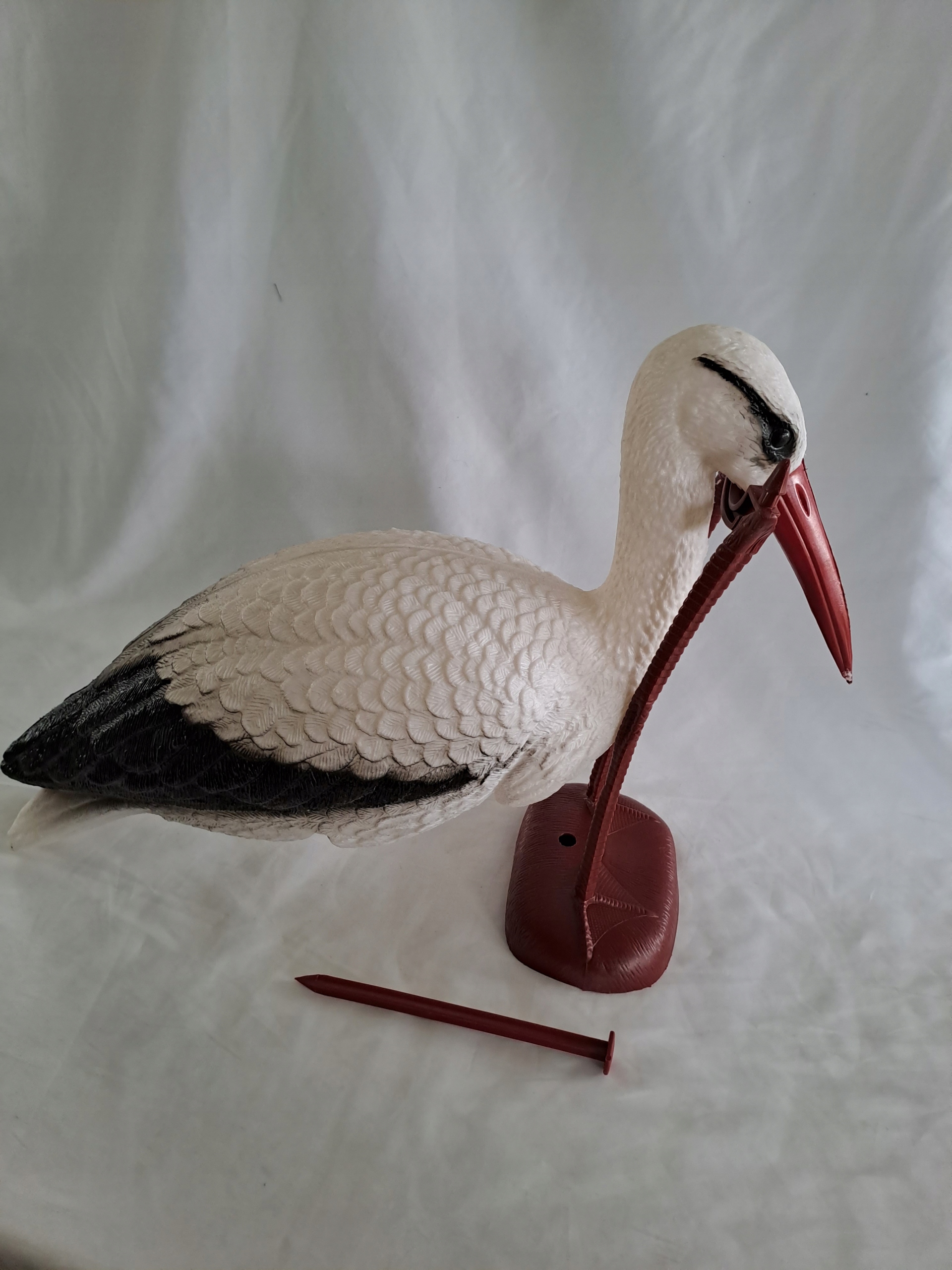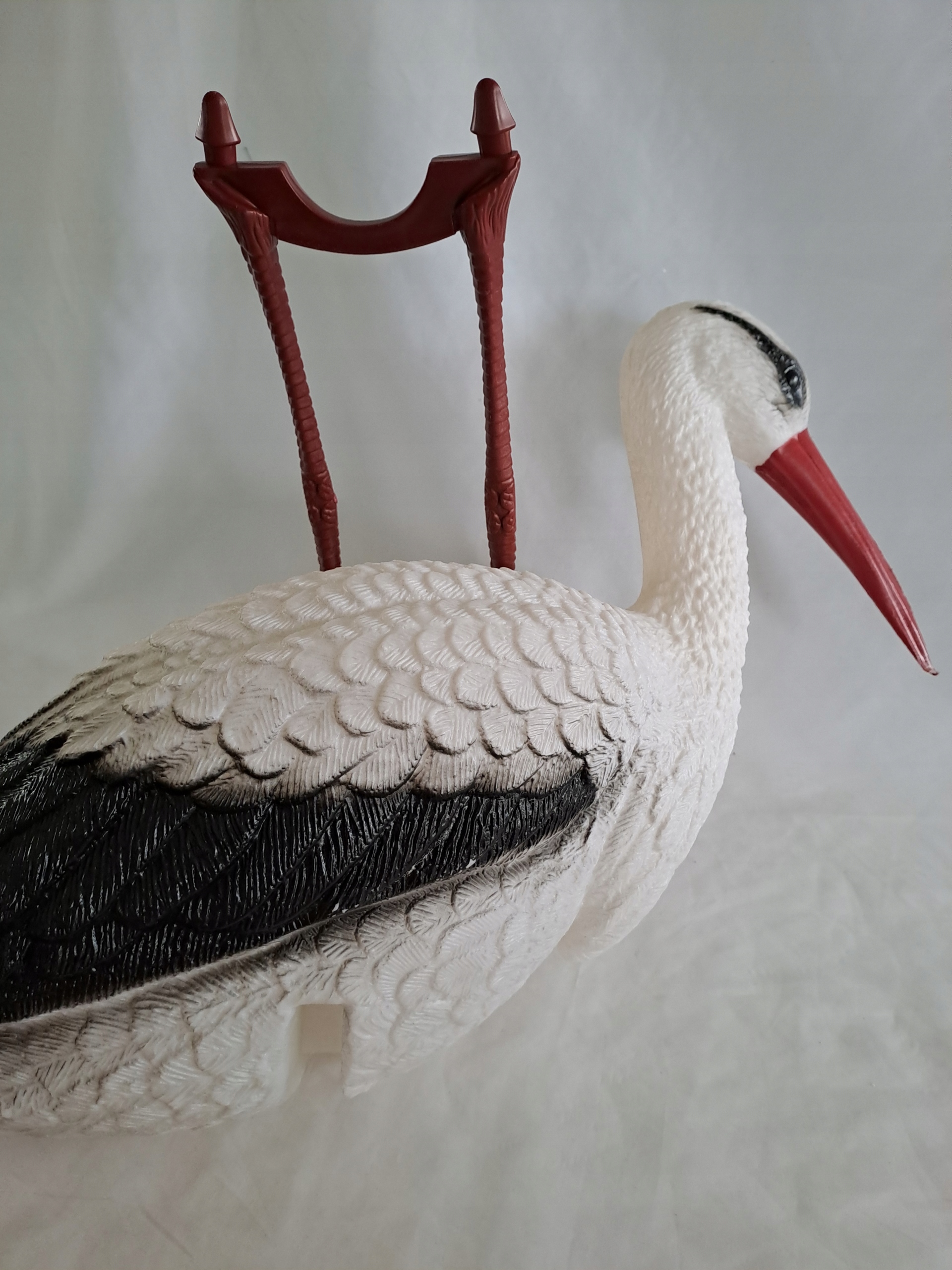 Наша садова фігурка лелеки стане стильною вінтажною прикрасою вашого саду. Декоративна тварина не тільки чудова прикраса саду - поставте фігурку лелеки біля свого ставка. Подивіться, як легко ви можете відлякати чапель від вашої риби. Ви також можете поставити лелеку на своєму балконі або терасі, щоб сповістити про народження дитини. Завдяки шипу, яким з’єднана фігура міцно закріплена в землі, лелека не полетить на зиму в теплі краї.