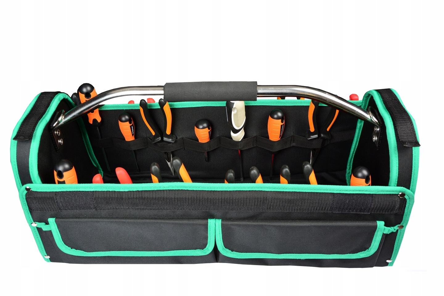 Це забезпечує порядок як під час зберігання, так і під час транспортування. Велика кількість кишень і відділень дає можливість зберігати і транспортувати як більші інструменти, так і менші елементи, а також швидкий доступ до них.