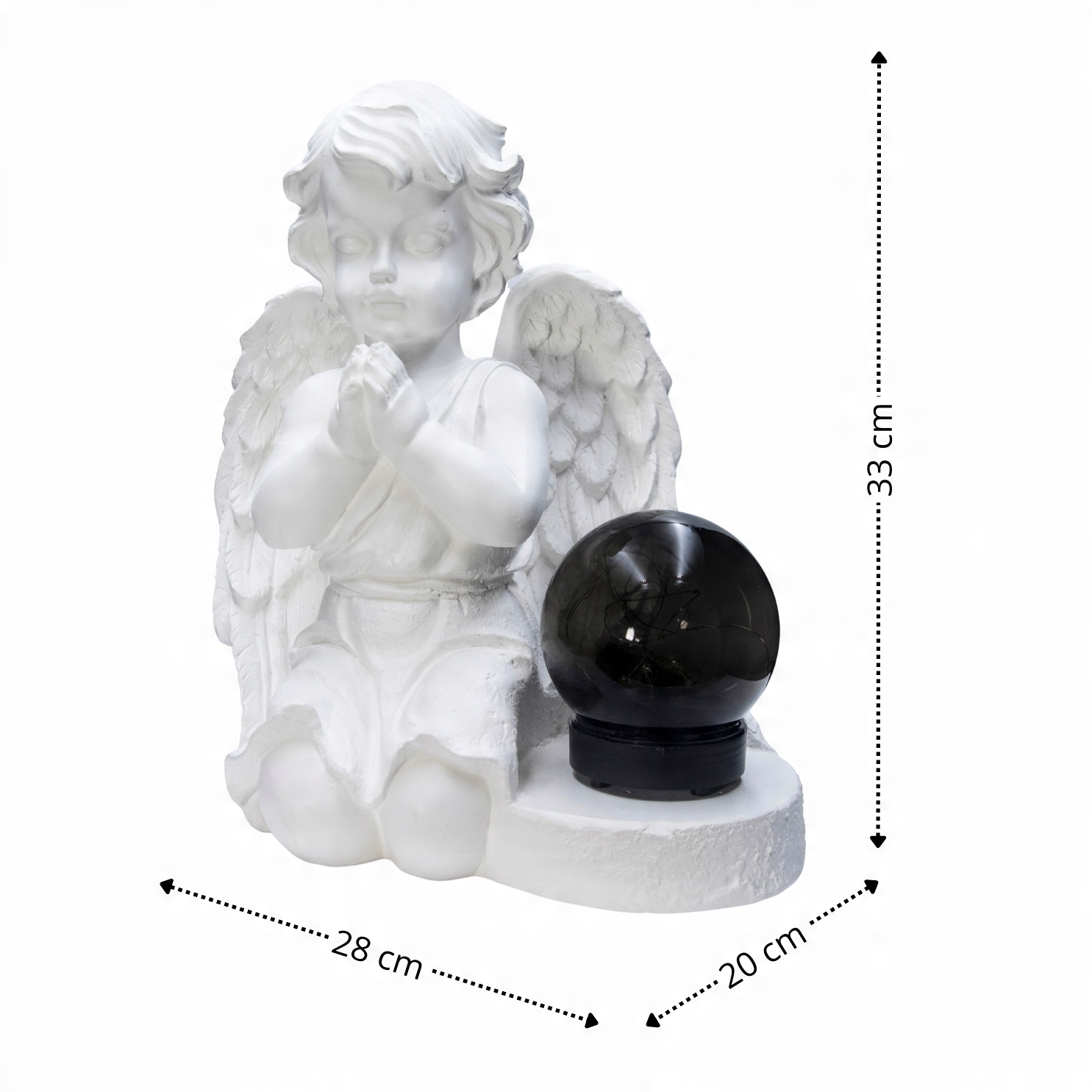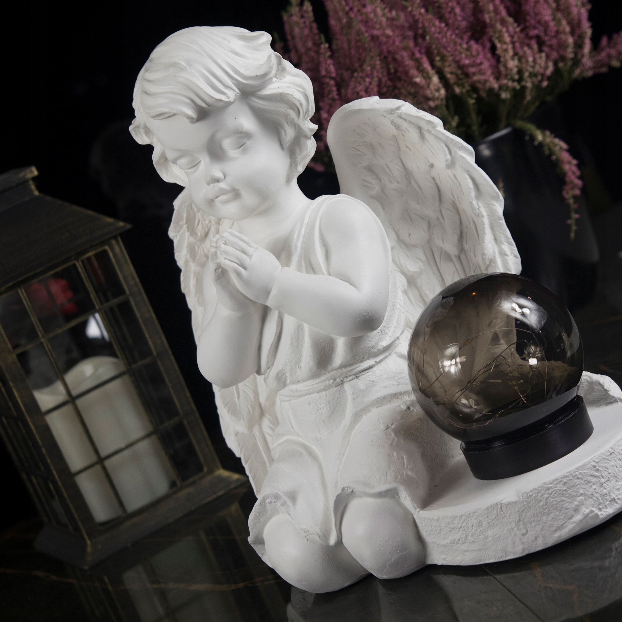 ➡️ Декоративна гіпсова садова фігурка, надгробок зі світлодіодною лампою у формі ангела - БІЛА