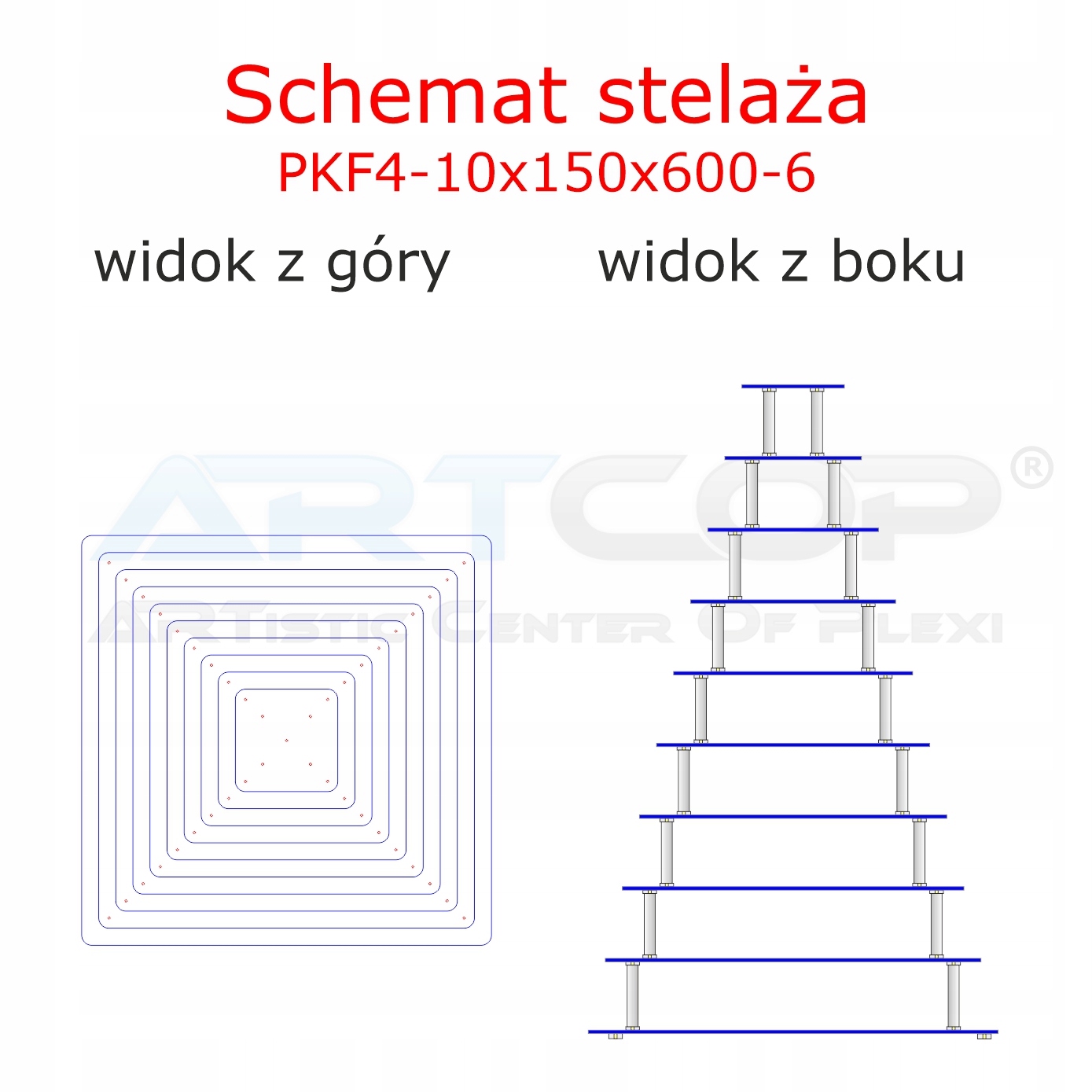 Велика підставка для торта на 10 ярусів, квадратна, на 170 монопорцій, діаметр. 8 см або 260 діаметром. 7 см, чотири колони, товсте оргскло. 6 мм