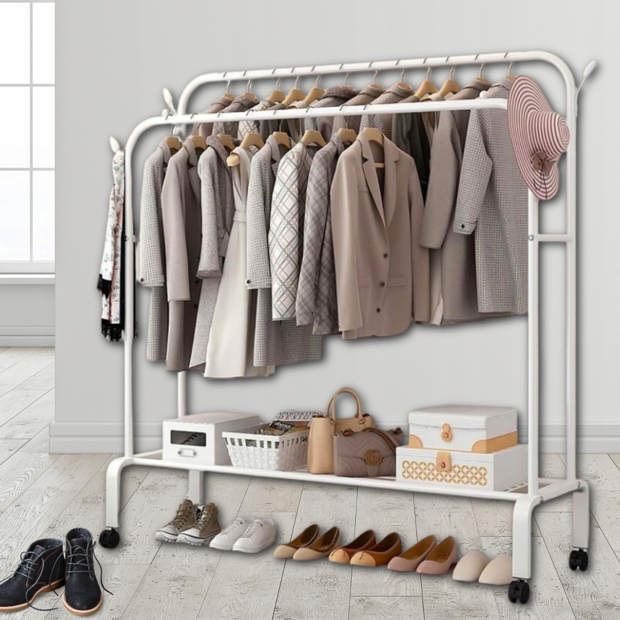 ⭐ Традиційні гардеробні зазвичай асоціюються з великими габаритами та витратами на покупку. Вирішивши придбати стоячу вішалку, ви заощадите b> простір для розвитку та грошей!