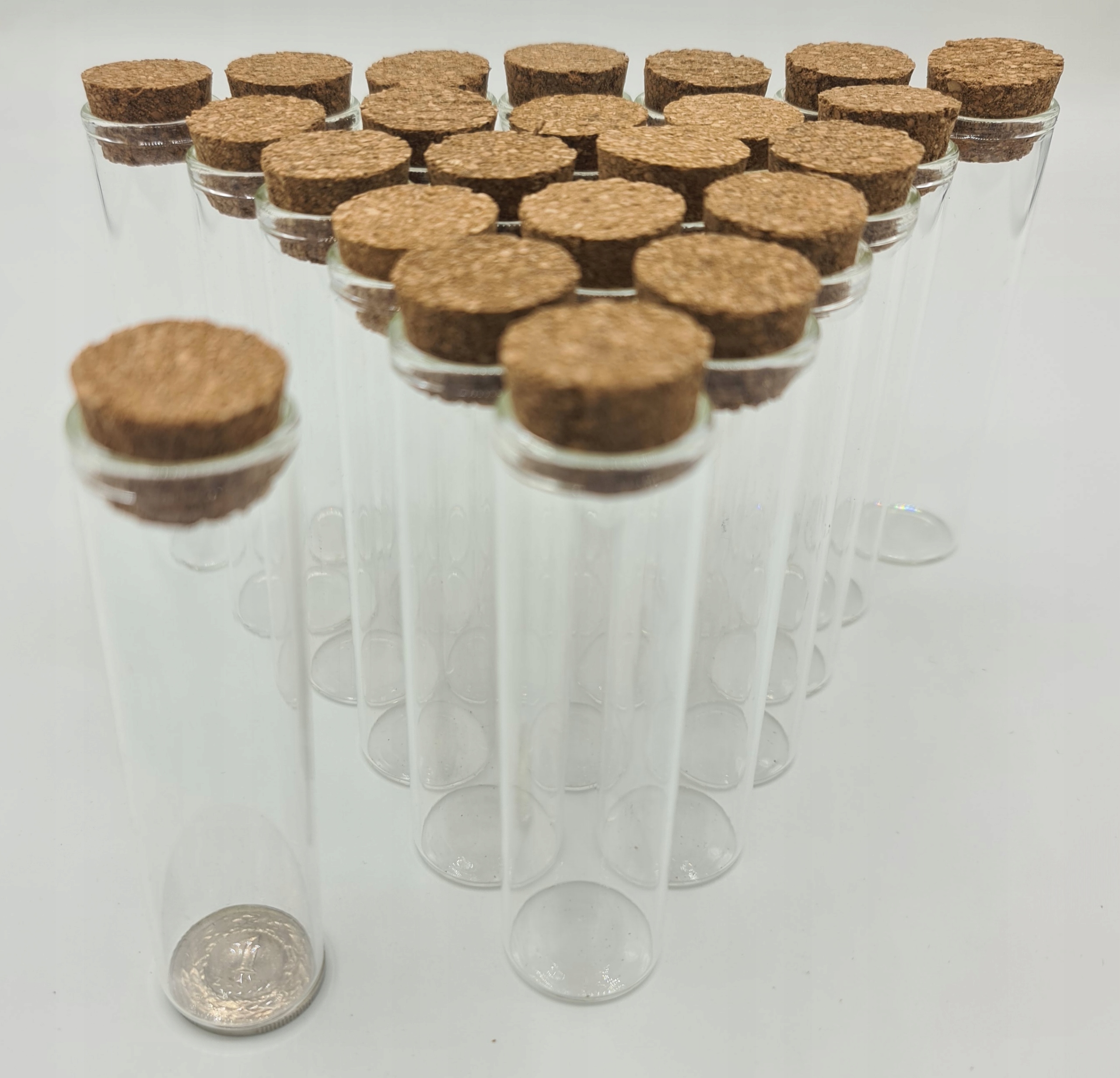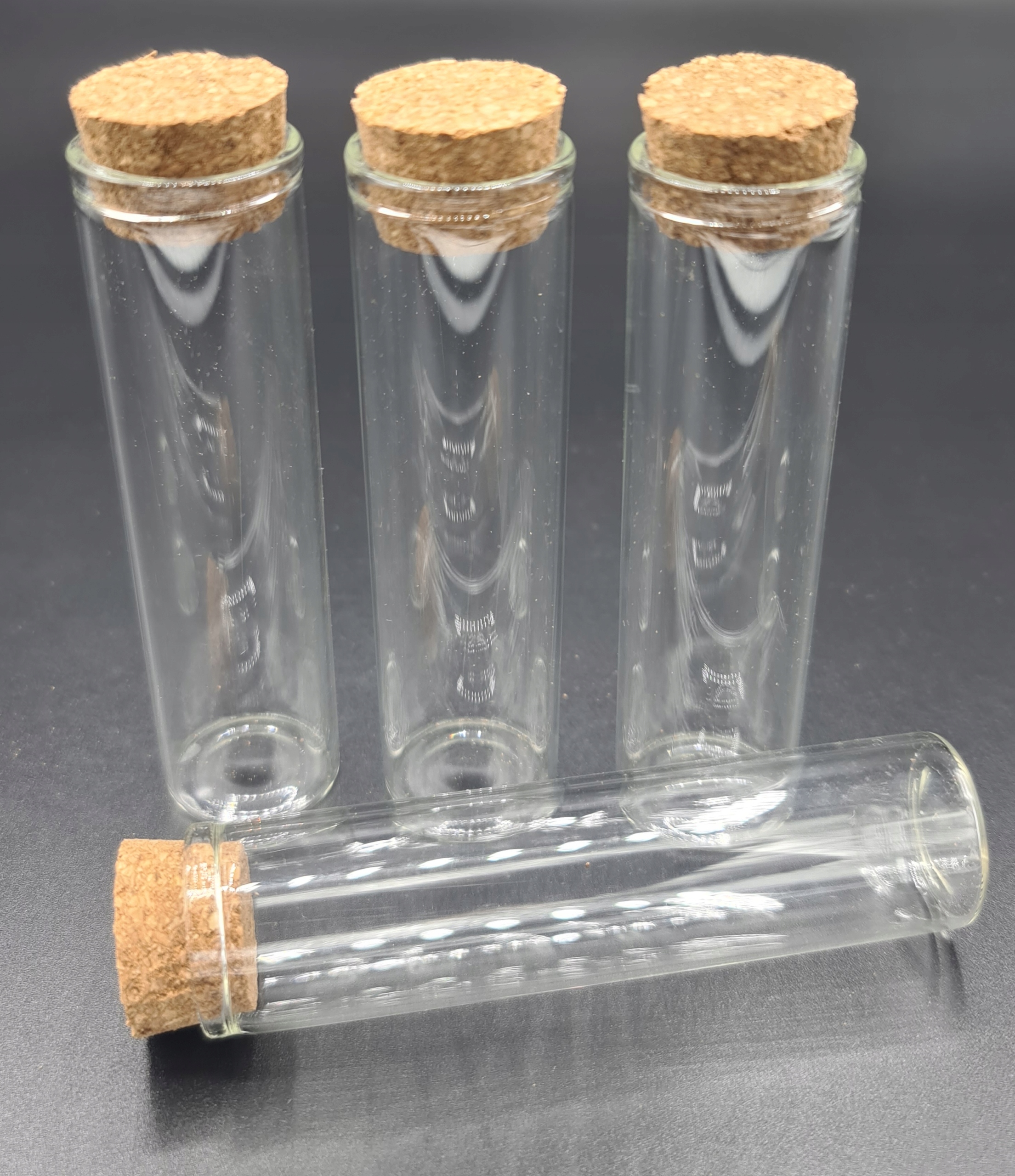 - Набір скляних пляшок із пробками, безпечно упакованих у коробку, наповнену пухирчастою плівкою.