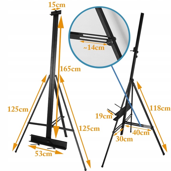 Мольберт має дві корисні плечі. Ми можемо носити додаткові аксесуари, корисні, наприклад, під час фарбування. Ми можемо скласти руки.