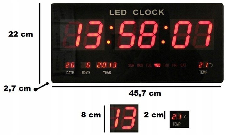 ВЕЛИКИЙ ЦИФРОВИЙ ГОДИНИК ЧЕРВОНИЙ Світлодіодний ТЕРМОМЕТР ДАТА