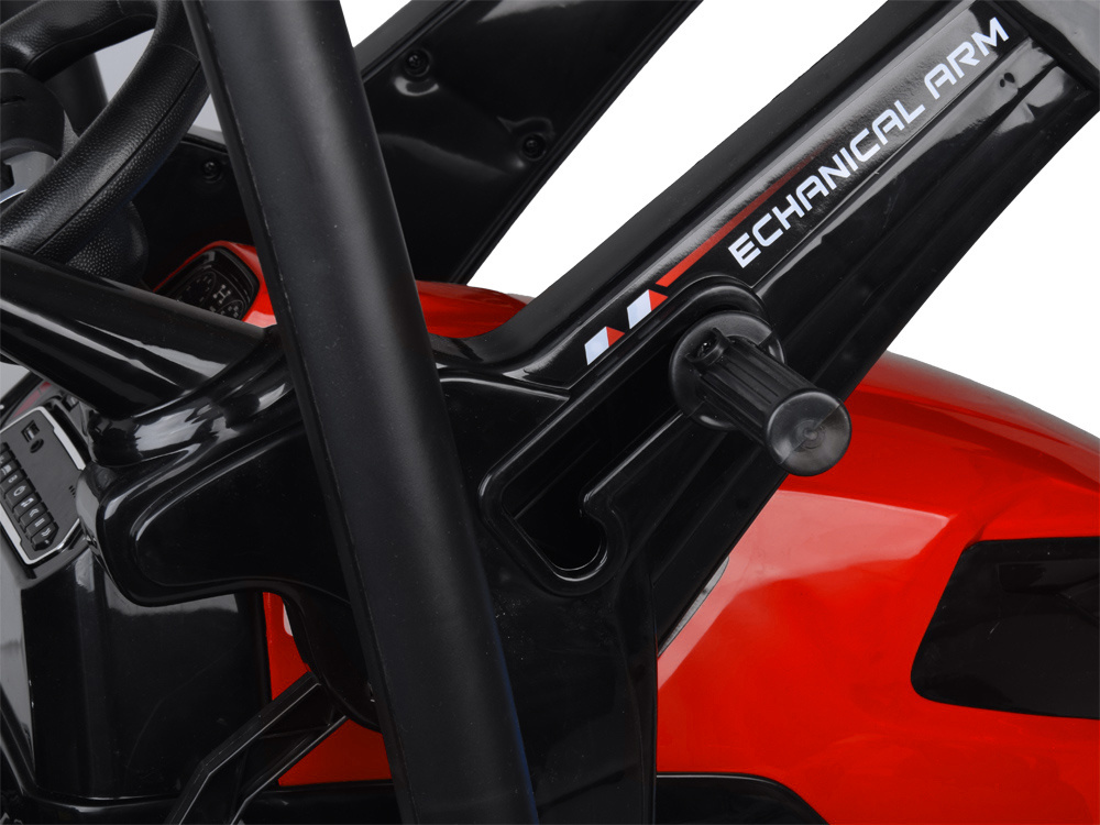 Трактор також оснащений ручкою перемикання . Безкоштовно. Завдяки цьому, саме батько вирішує, чи може дитина "кинути більш високу передачу" і їхати з більшою швидкістю. Це полегшує адаптацію транспортного засобу до віку та навичок дитини.