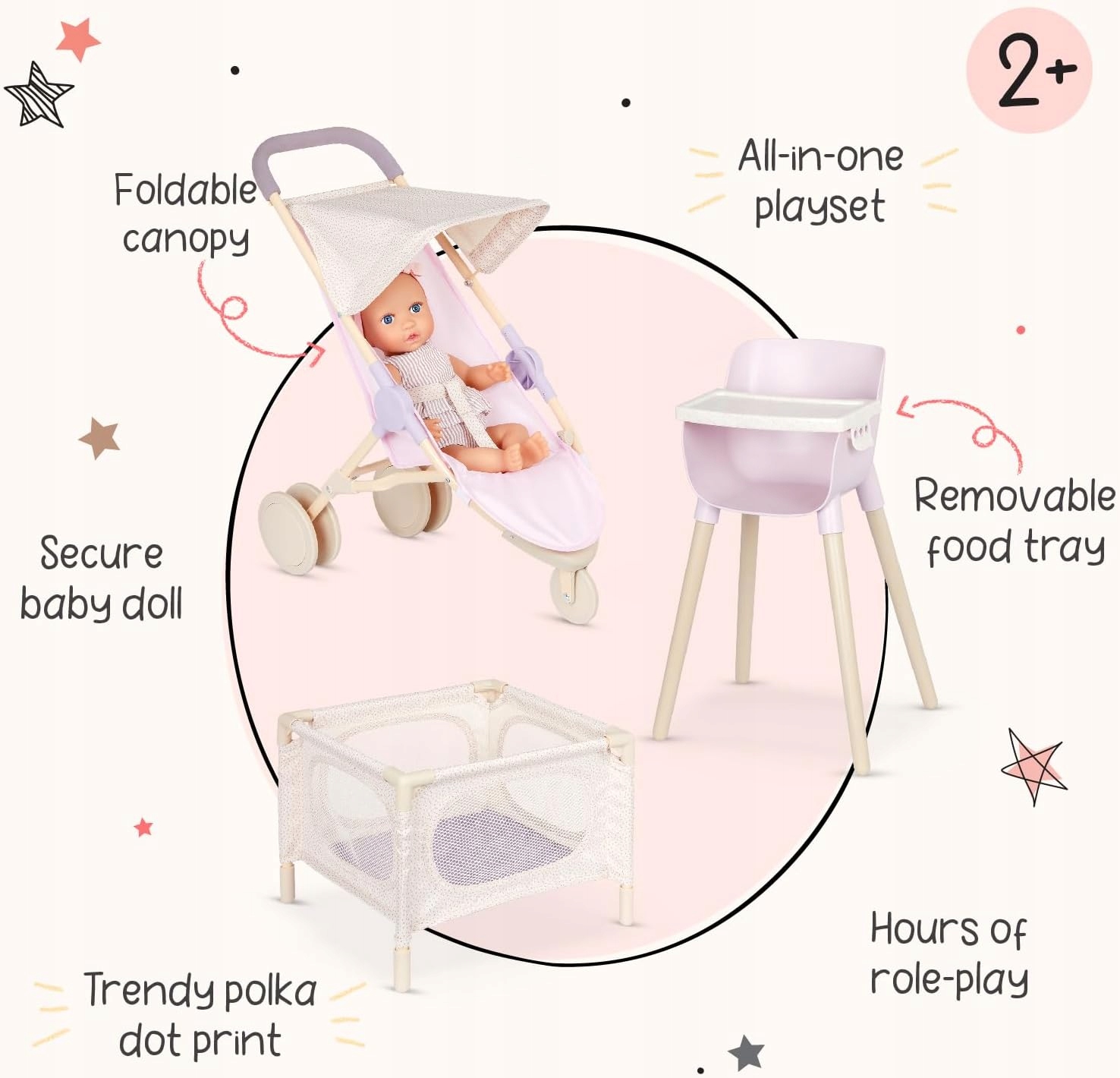 - Створіть прекрасну дитячу кімнату у улюблених місцях, щоб грати завдяки PEJ для ляльок колискових, коляски, крісло для годування та доданої ляльки