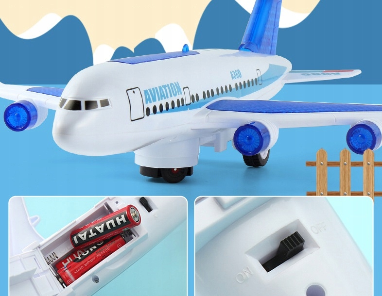 ВЕЛИКИЙ ІНТЕРАКТИВНИЙ ПАСАЖИРСЬКИЙ ЛІТАК 38 СМ НА АКУМУЛЯТОРІ СВІТЛО ЗВУК