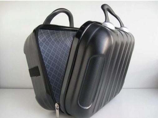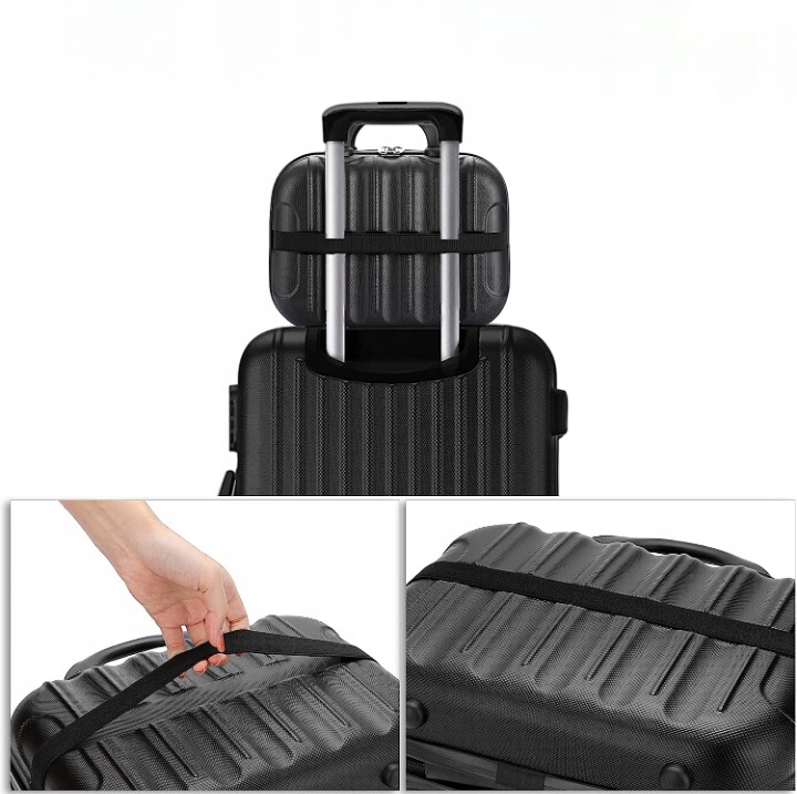 Косметичка має дві ручки з жорсткого матеріалу. пластик. Чохол також має еластичну стрічку з одного боку, яка використовується для кріплення, наприклад, до ручки валізи