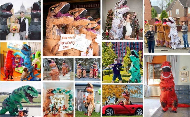 динозавр. Надувний костюм динозавра виготовлений з високоякісного поліестеру, м’якої та зручної клітковини. Гігантські динозаври дикі та чарівні. Наш надувний костюм динозавра виглядає чудово і весело, де б ви не були!