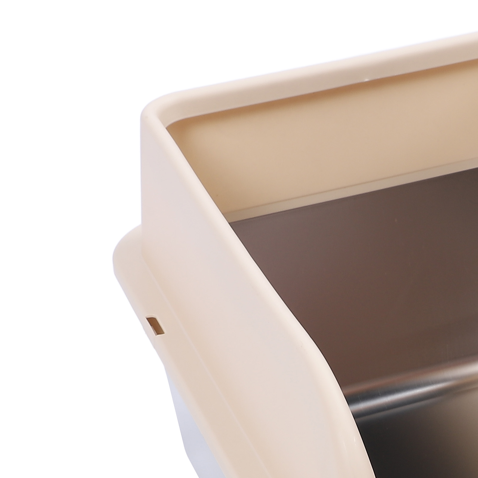 3. Верхній дизайн: інноваційна конструкція верхнього входу не дозволяє котам розкидати сміття поза коробкою, допомагаючи підтримувати простір чистим і охайним, забезпечуючи легкий доступ для домашніх тварин.