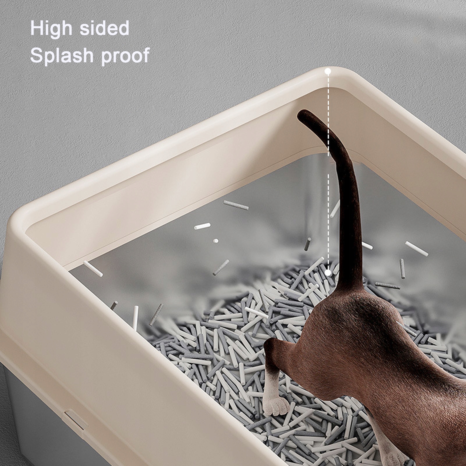 1. Конструкція великої місткості: цей котячий лоток вміщує кілька котів одночасно, значно зменшуючи бризки та безлад, що робить його ідеальним для домогосподарств із кількома котами.