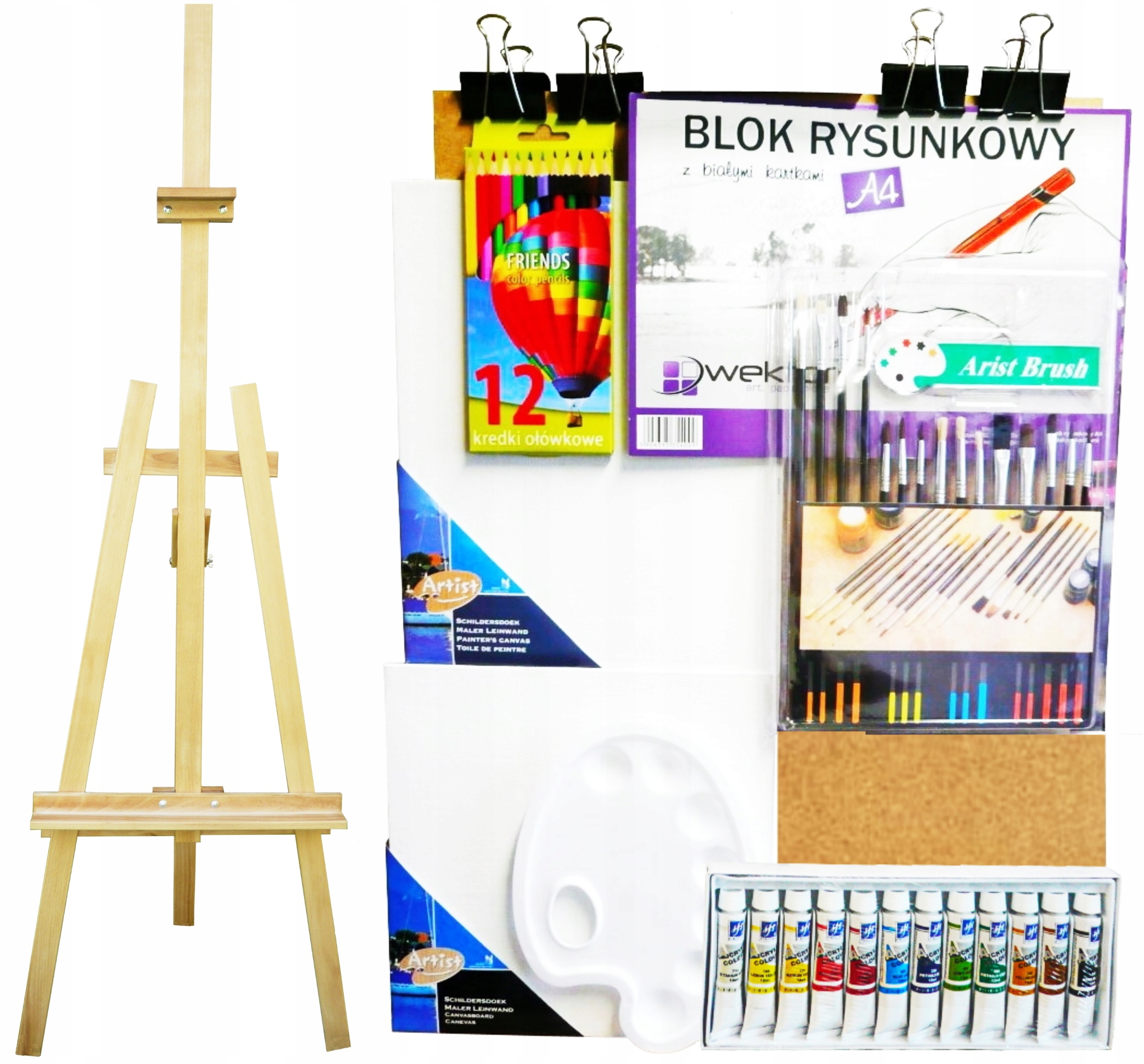 ВЕЛИКИЙ НАБІР ДЛЯ МАЛЮВАННЯ МОЛЬБЕРТ ПОЛОТНО ФАРБИ КИСТІ