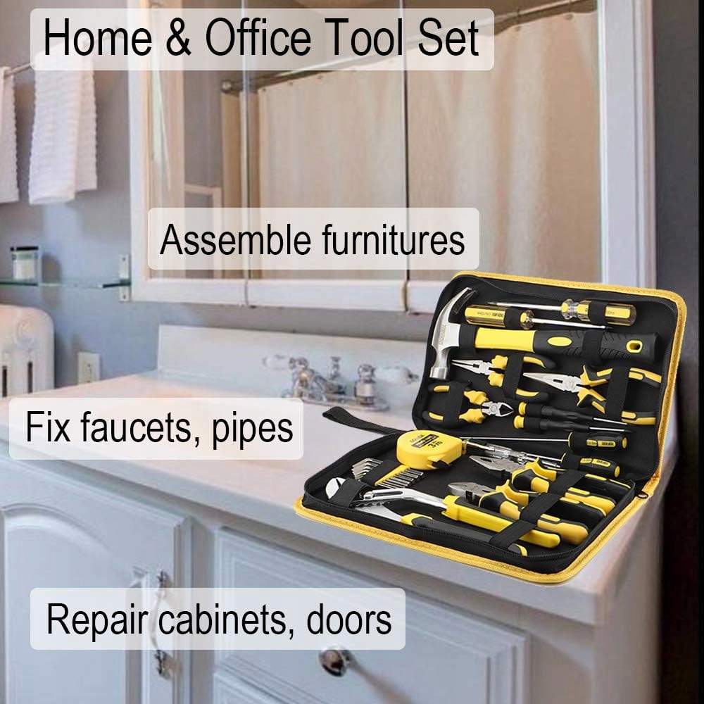 Цей домашній набір інструментів включає інструменти для дрібного ремонту та базових проектів DIY, як-от підвішування картини, збірка меблів, освітлення, закручування шурупів, столярка, по дому, офісу, гаражу, майстерні.
