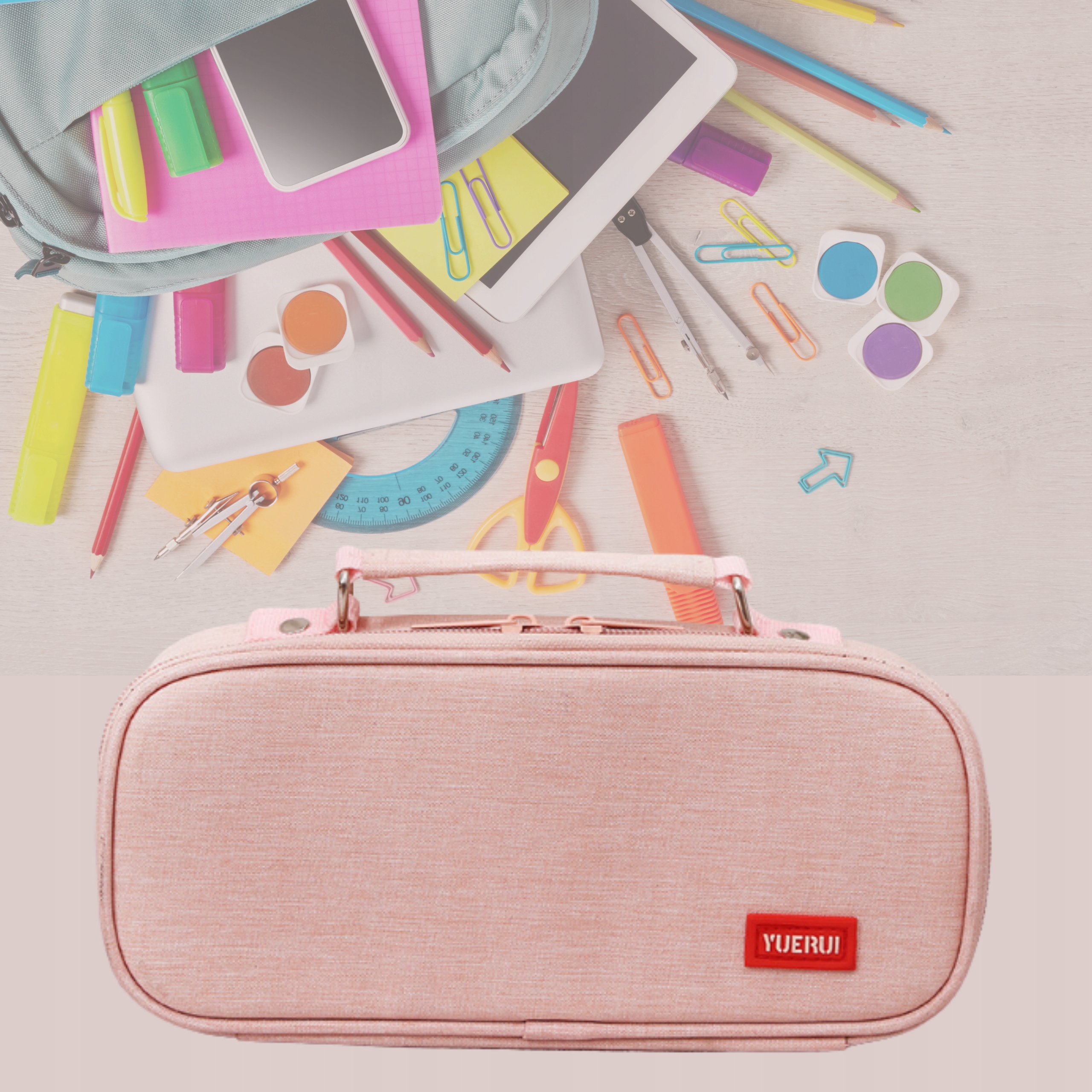Великий пенал-органайзер для школи, пудрово-рожевий