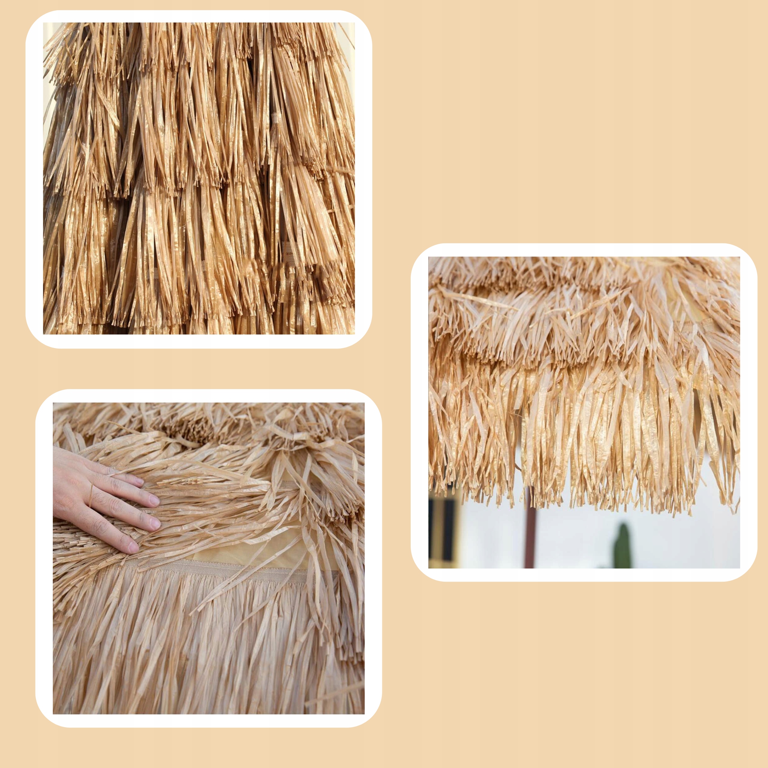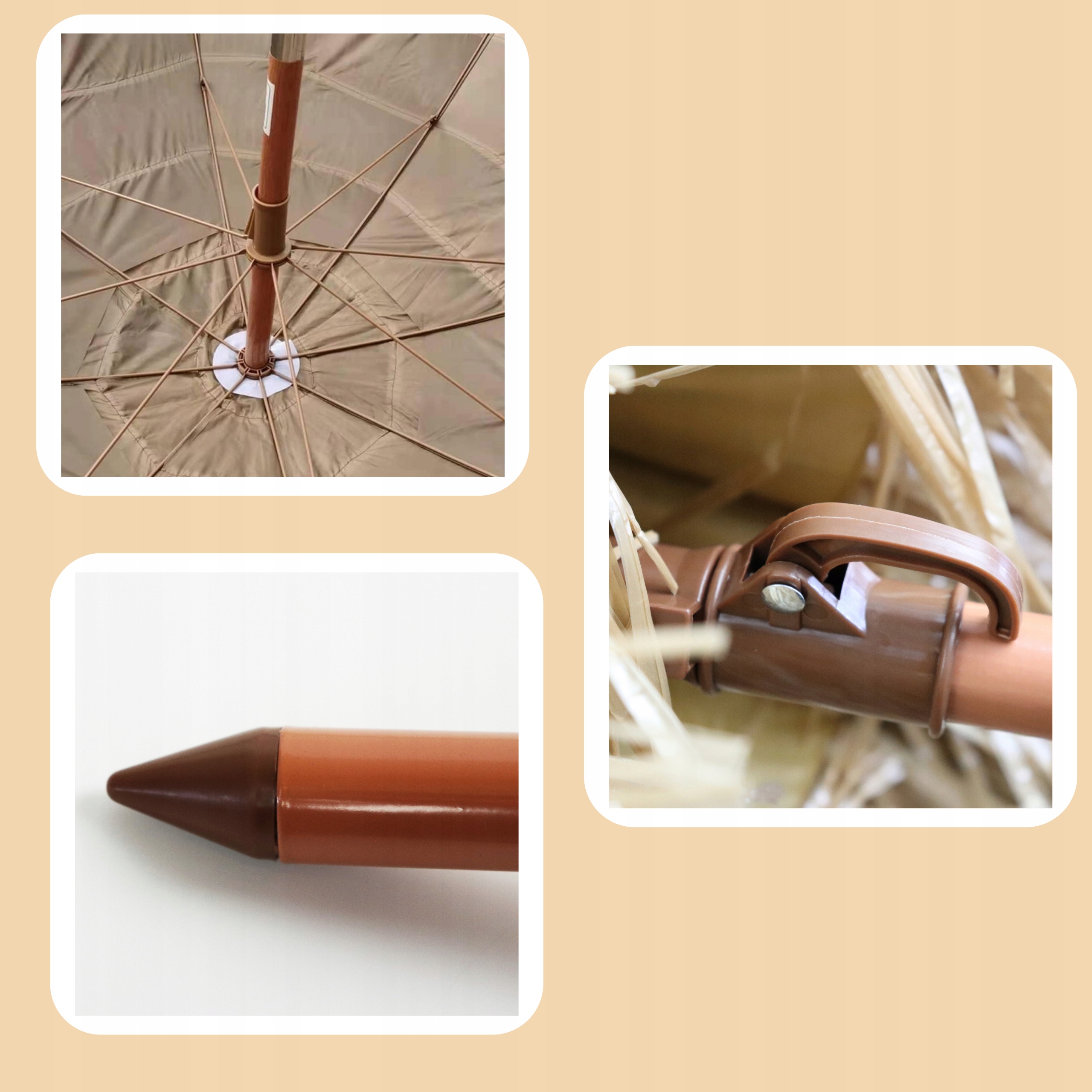 ✔ Styl Hawajski - Унікальний унікальний, тропічний вигляд, який введе атмосферу Гаваїв на кожному зовнішньому Простір. Тінь. B> ✔ Сільська конструкція - У парасольці є сталевий каркас і 8 дротяних ребер, які дають їй стабільність. Поліестерна оболонка забезпечує додатковий сонцезахисний крем Бежево-коричневий колір дає йому елегантність.