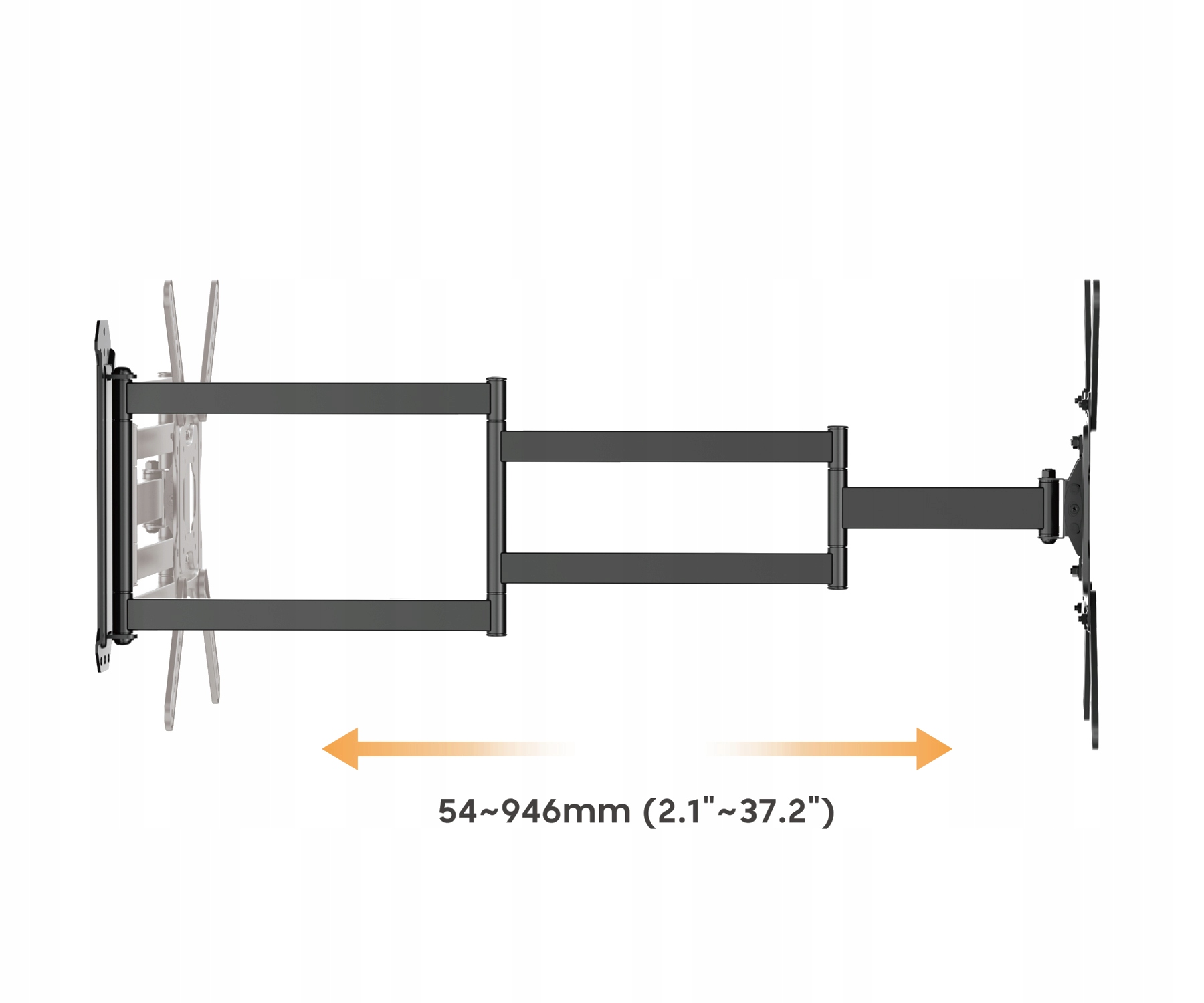 Завдяки надзвичайно довгому кронштейну, який можна подовжити до 946 мм, ви можете гнучко розташувати екран майже в будь-якому положенні.