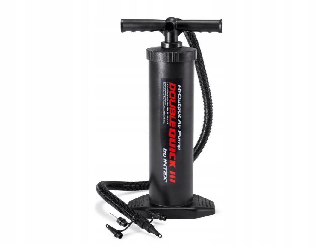 Надувні аксесуари для ігор у воді швидко накачуються за допомогою практичного (великого) ручного насоса INTEX, який здивує багатьох своїми можливостями. Насос дозволяє нагнітати повітря в обох напрямках. З кожним наступним рухом всередину надувного аксесуара проникає повітря - це значно скорочує час надування. Насос оснащений 3 універсальними наконечниками. Завдяки їм він сумісний практично з усіма надувними виробами, доступними на ринку.