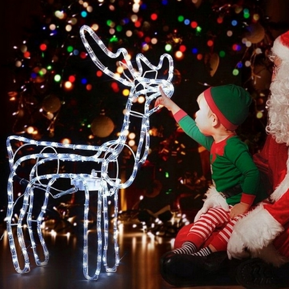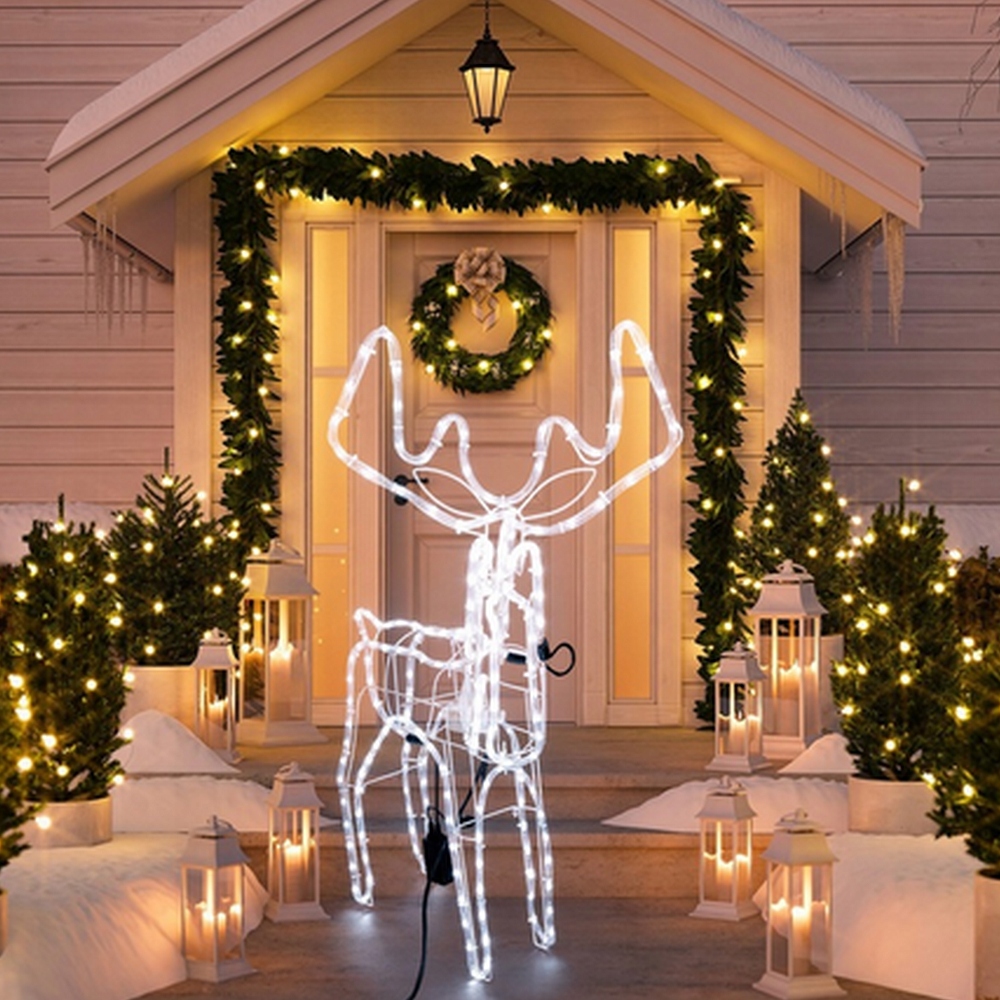 Світлі олені — це чудовий варіант надати будинкам, терасам або садам унікальний різдвяний характер. Бо що приносить оленя, як не тільки приємні асоціації, такі як Дід Мороз, Різдво, подарунки та зима? Подаруйте трохи задоволення собі та своїм близьким, а особливо дітям, і зачаруйте своє оточення. Це легше, ніж ви думаєте.