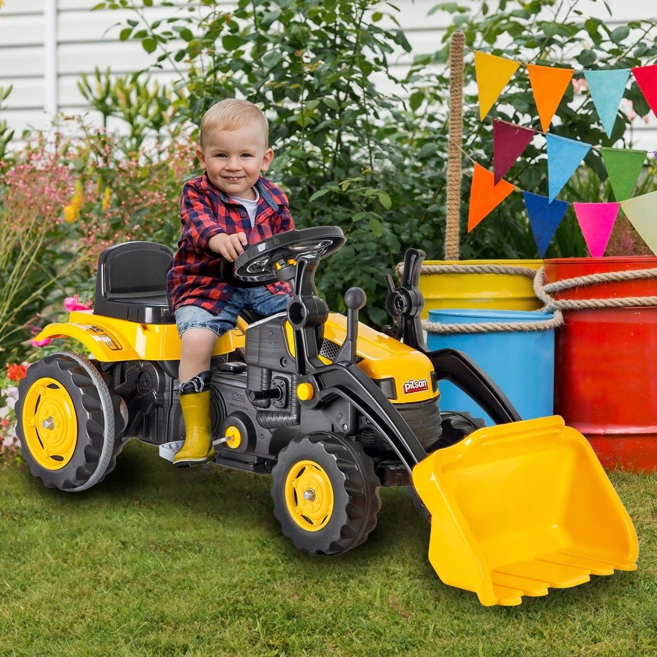 Екскаватор має надійну рульову систему, що полегшує керування трактором навіть наймолодших користувачів. Передня вісь кручення забезпечує ідеальне скручування малюком.