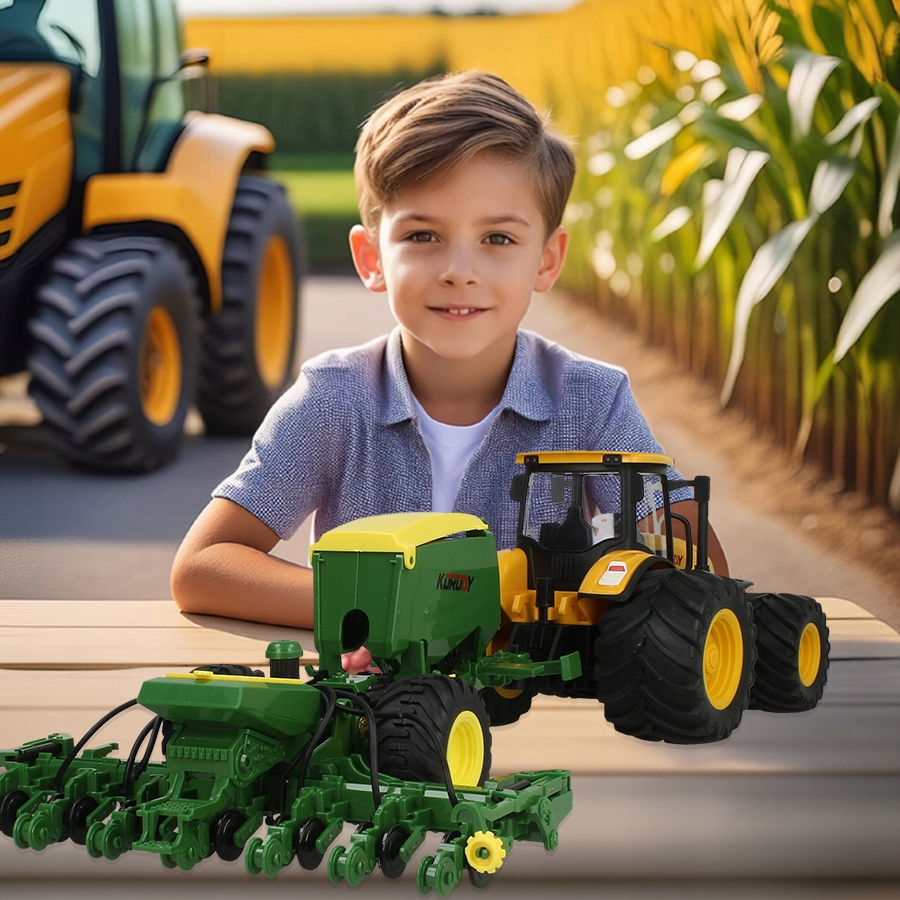 Допомагати дідусеві в полі та мати можливість покататися на сільськогосподарській машині – неймовірна розвага для малюка. Спостерігати за роботою важкої сільськогосподарської техніки для них дуже захоплююче. Завдяки цьому іграшковому трактору з кукурудзяною сівалкою він зможе сам стати маленьким фермером.