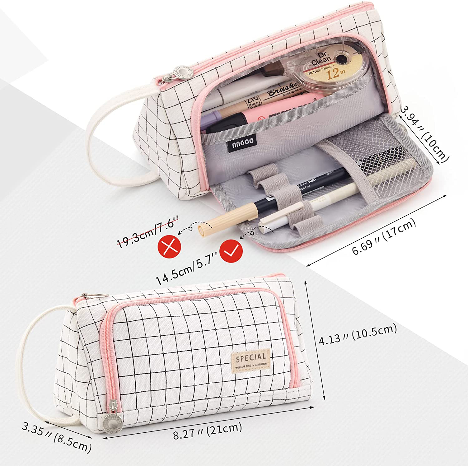 Унікальний дизайн: подвійні гладкі блискавки, 3 основні відділення та речі, які можна добре організувати. Олівці відкриваються на 180 градусів, тому ви можете легко отримати доступ до канцелярського приладдя