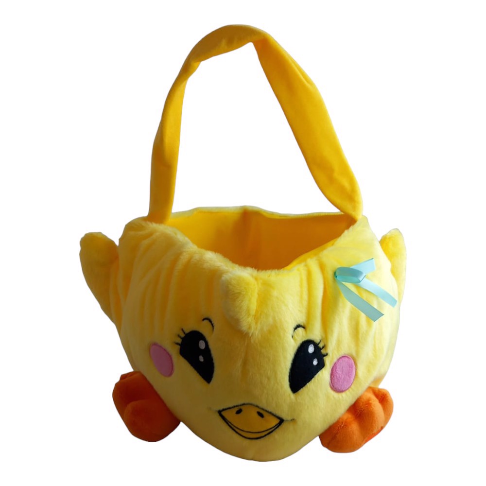 Чудовий великодній кошик для дітей з ручкою у формі плюшевої курочки.