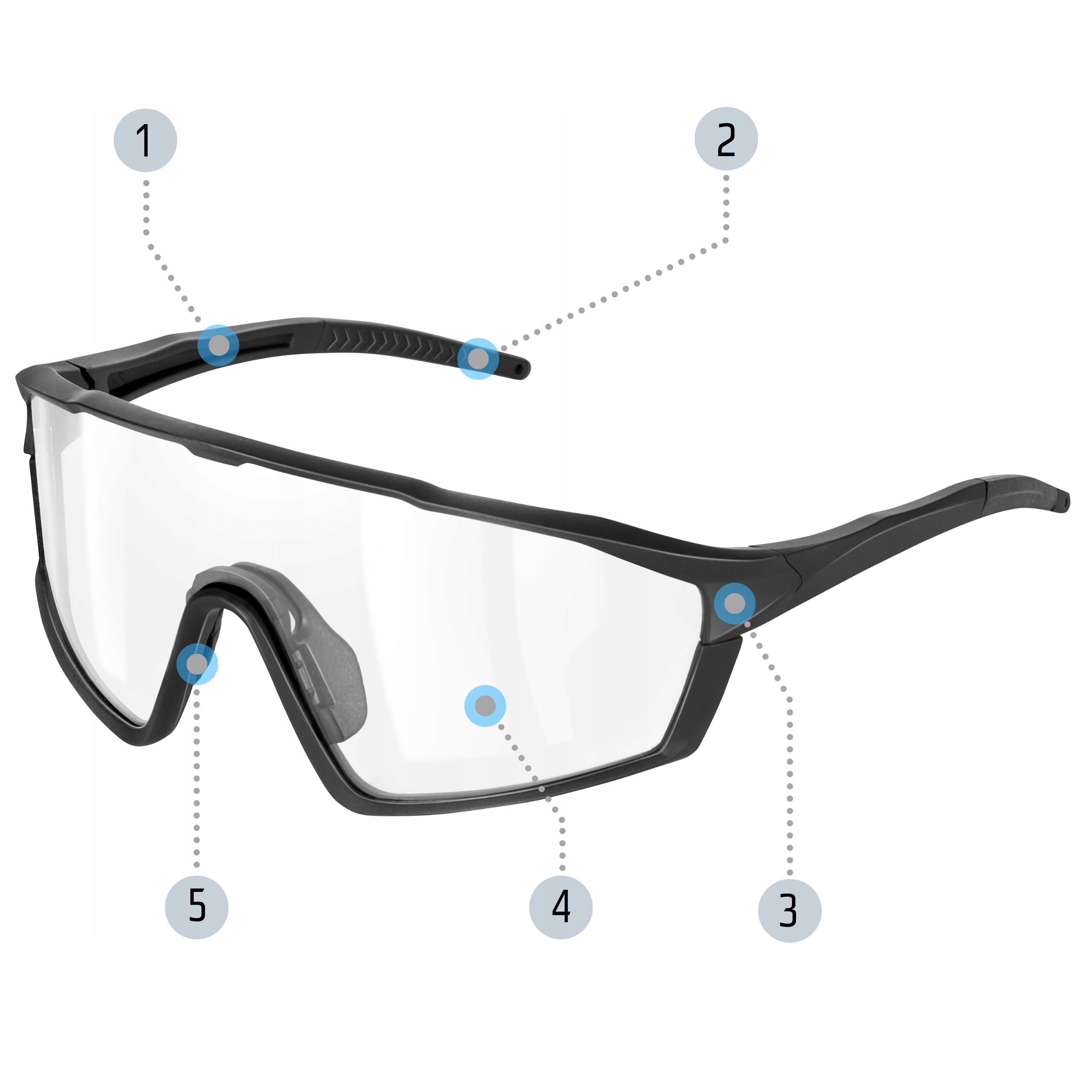 - гіпоалергенні силіконові накладки на нос і скроні (запобігають ковзанню окулярів під час їзди або бігу - ідеально підходять для шосе та всіх типів MTB, а також для бігу, триатлону та повсякденного використання)