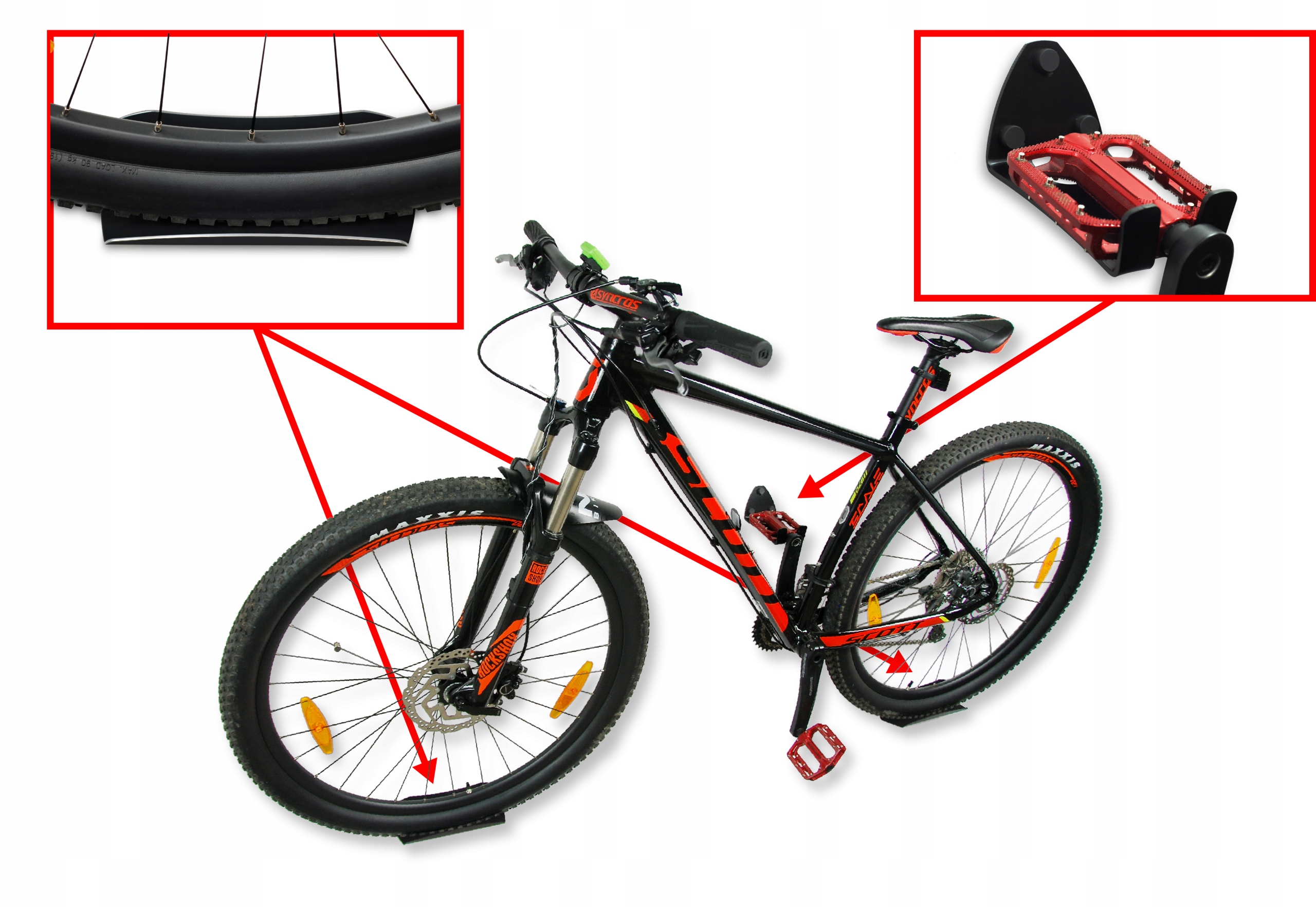 - Форма вішалки розроблена таким чином, щоб ергономіка та закруглені краї полегшували безпроблемне підвішування велосипедів.