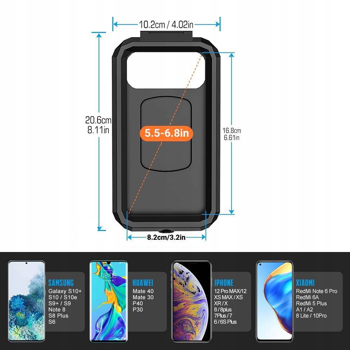 🚴♀ 【універсальний для мобільних телефонів】 водонепроникна ручка велосипедного телефону дозволяє безпечно встановлювати майже будь -який мобільний телефон до 6,8 дюймів! Ручка вписує телефони з діагональною до 6,8 дюймів, таких як iPhone 12 Pro Max, 11 Pro Max, XS Max, 8 Plus, 7 Plus, 6s Plus, Samsung Galaxy S21 Ultra 5G, S20 Ultra, S20+, примітка 10 плюс, примітка 20 Ultra, Huawei Mate20 Pro, Xiaomi, Htc, Sony.