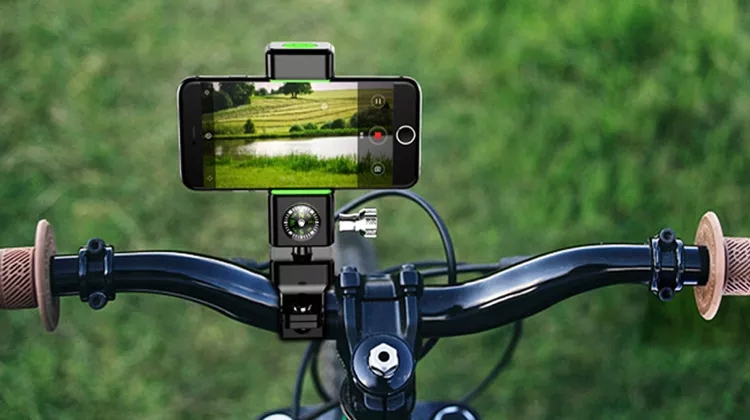 Ручка велосипеда для телефону, призначена для кріплення на кермі. Виготовлений з високої якості ABS , призначений для смартфонів із шириною від 52 мм до 87 мм. Ручка має великі варіанти регулювання (обертання 360 градусів), тому ми можемо ідеально адаптувати його до наших потреб. Побудований -in compass сприяє навігації в полі під час руху.