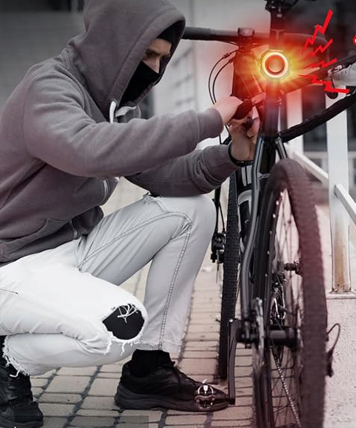 Гучна велосипедна сигналізація (110 дБ) із датчиком руху - ефективно відлякує злодіїв і захищає ваш велосипед. Високочутливий датчик виявляє найменший рух і негайно запускає сигнал тривоги. Ваш велосипед у безпеці, а ви спокійні.
