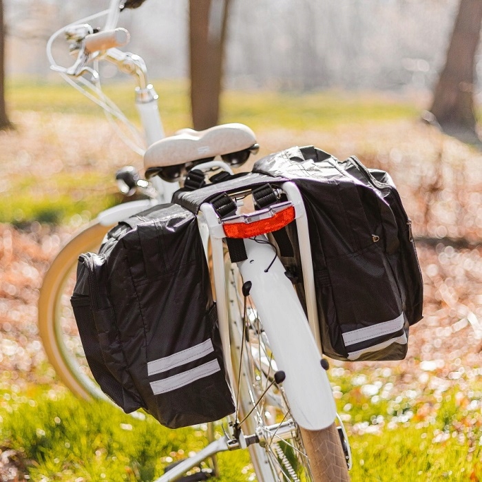 Просте встановлення - кріпиться до задньої частини багажника за допомогою міцних ремінців із застібками. Сумка виготовлена з міцного матеріалу і захищена від бризок. Універсальне використання підходить для більшості стійок, доступних на ринку. Задня частина сумки додатково оброблена світловідбиваючим матеріалом.