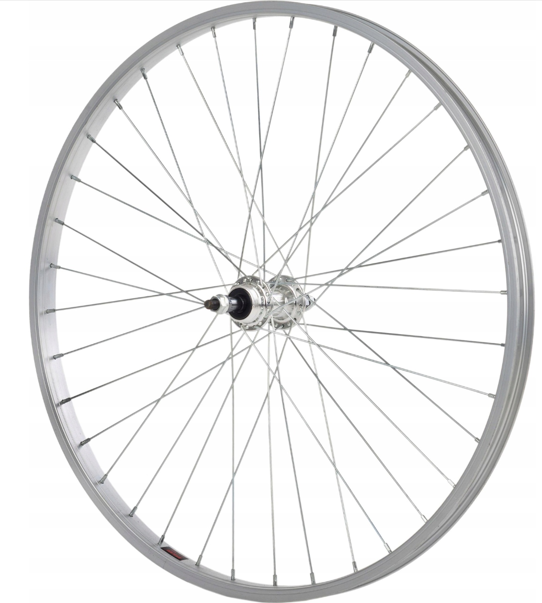 ALUM ЗАДНЄ КОЛЕСО ДЛЯ ВІЛЬНОЇ ШВИДКОСТІ 6-7, РОЗМІР 28". ДЛЯ ВИНКИХ ГАЛЬМ V-BRAKE. КОЛЕСО З ГАЙКАМИ. КОЛЕСО ПІДХОДИТЬ НА ШИНИ ВІД 28x 1.55 ДО 28x 2.30. СРІБЛИСТИЙ КОЛІР