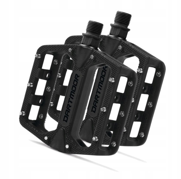 Легкі платформні педалі з литого алюмінію. Вони характеризуються дуже низьким профілем, міцною конструкцією та дуже хорошим зчепленням. Вісь з Cr-Mo сталі. Оснащений шарикопідшипниками. 10 змінних шпильок з кожного боку.